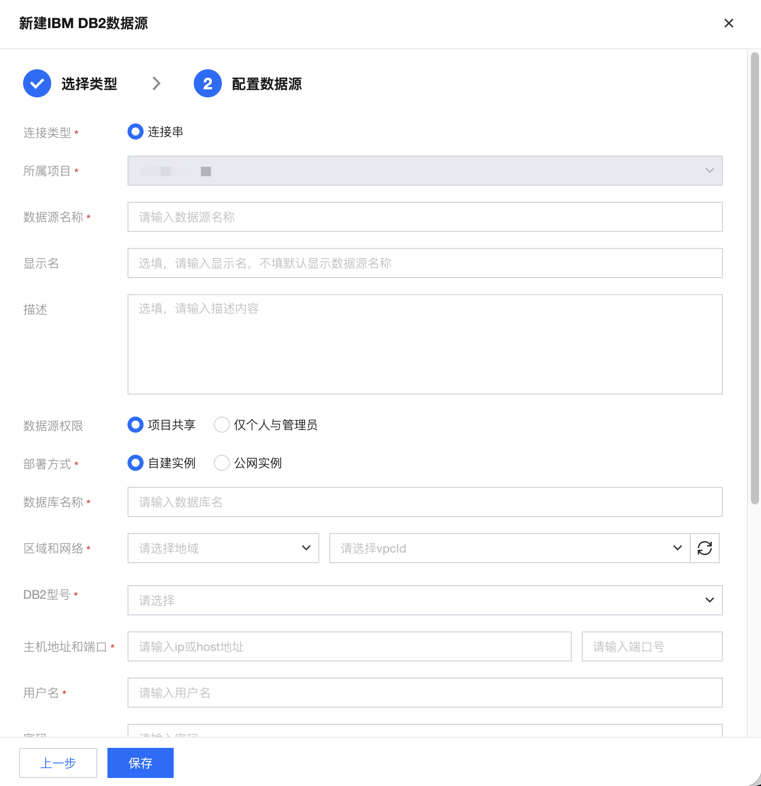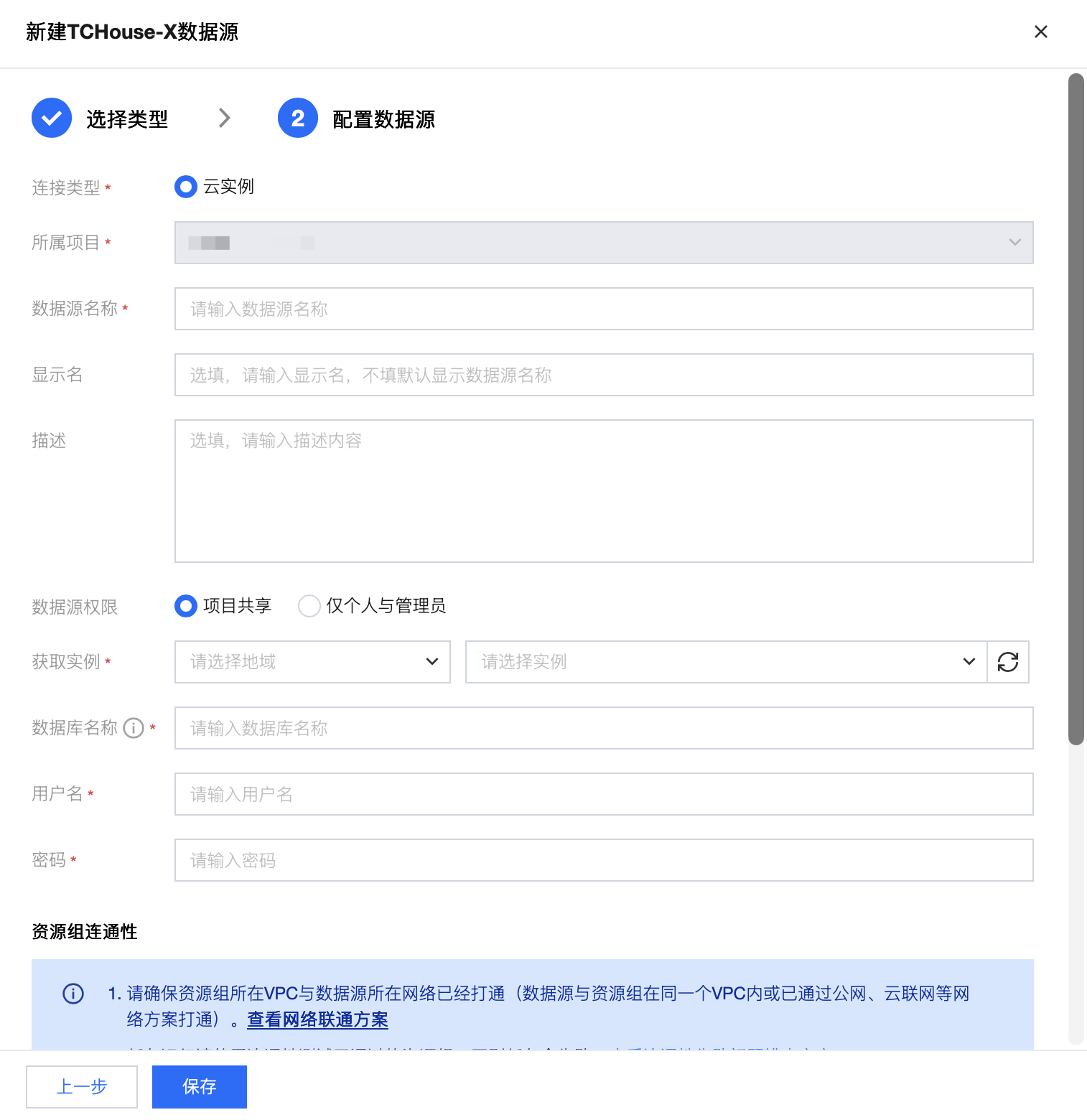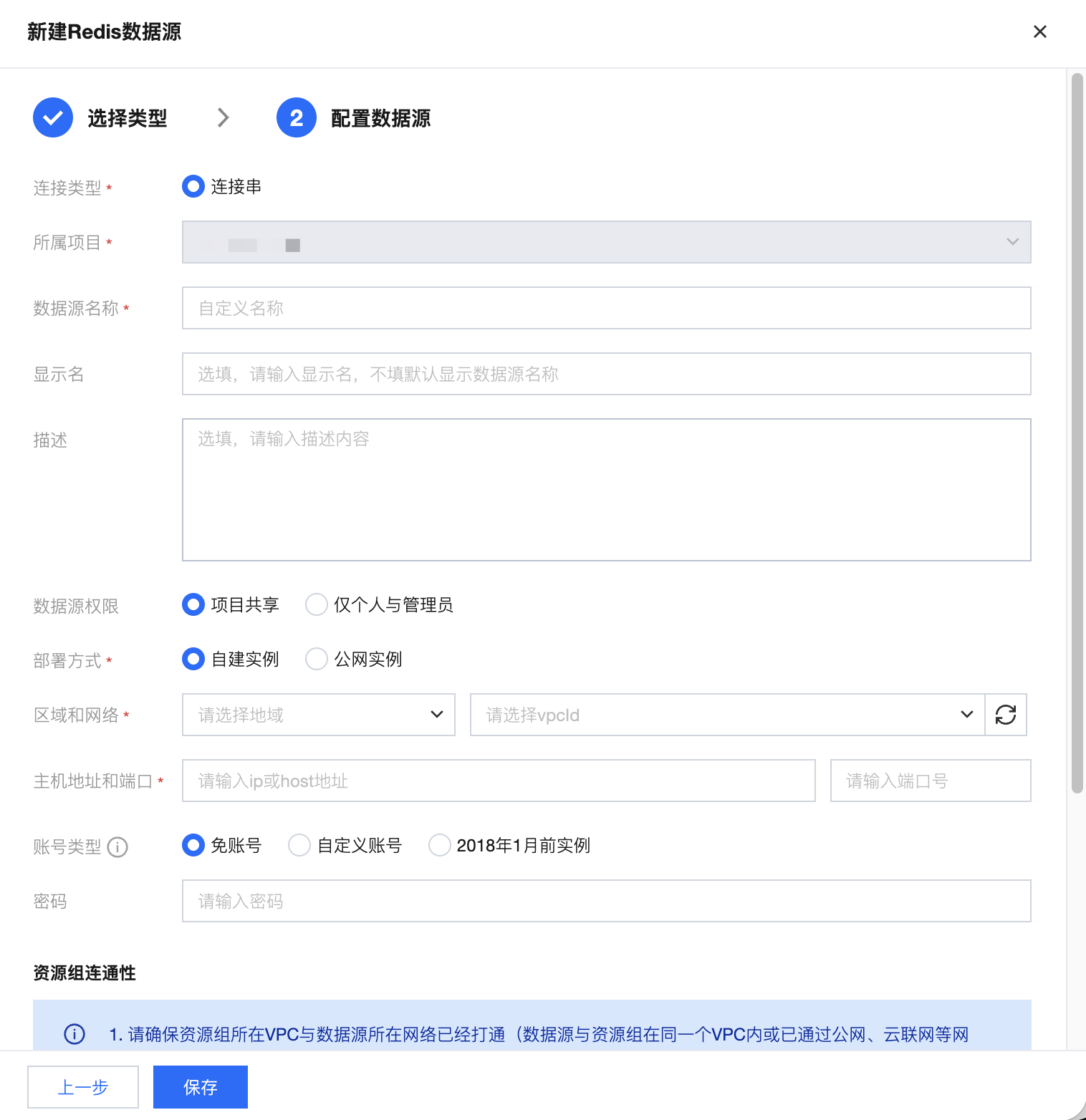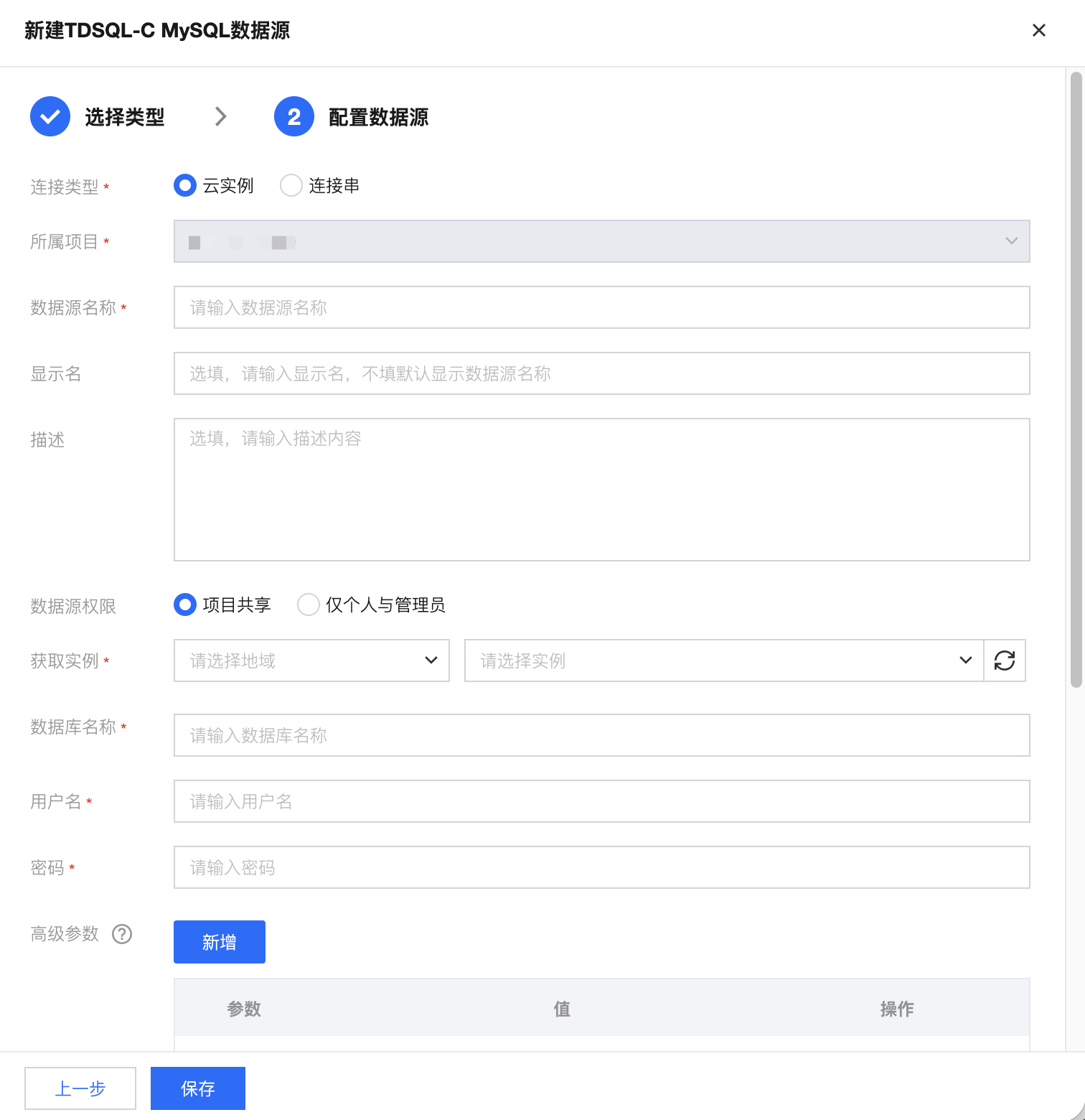 连接类型 | 选择云实例或连接串的数据源连接形式 |