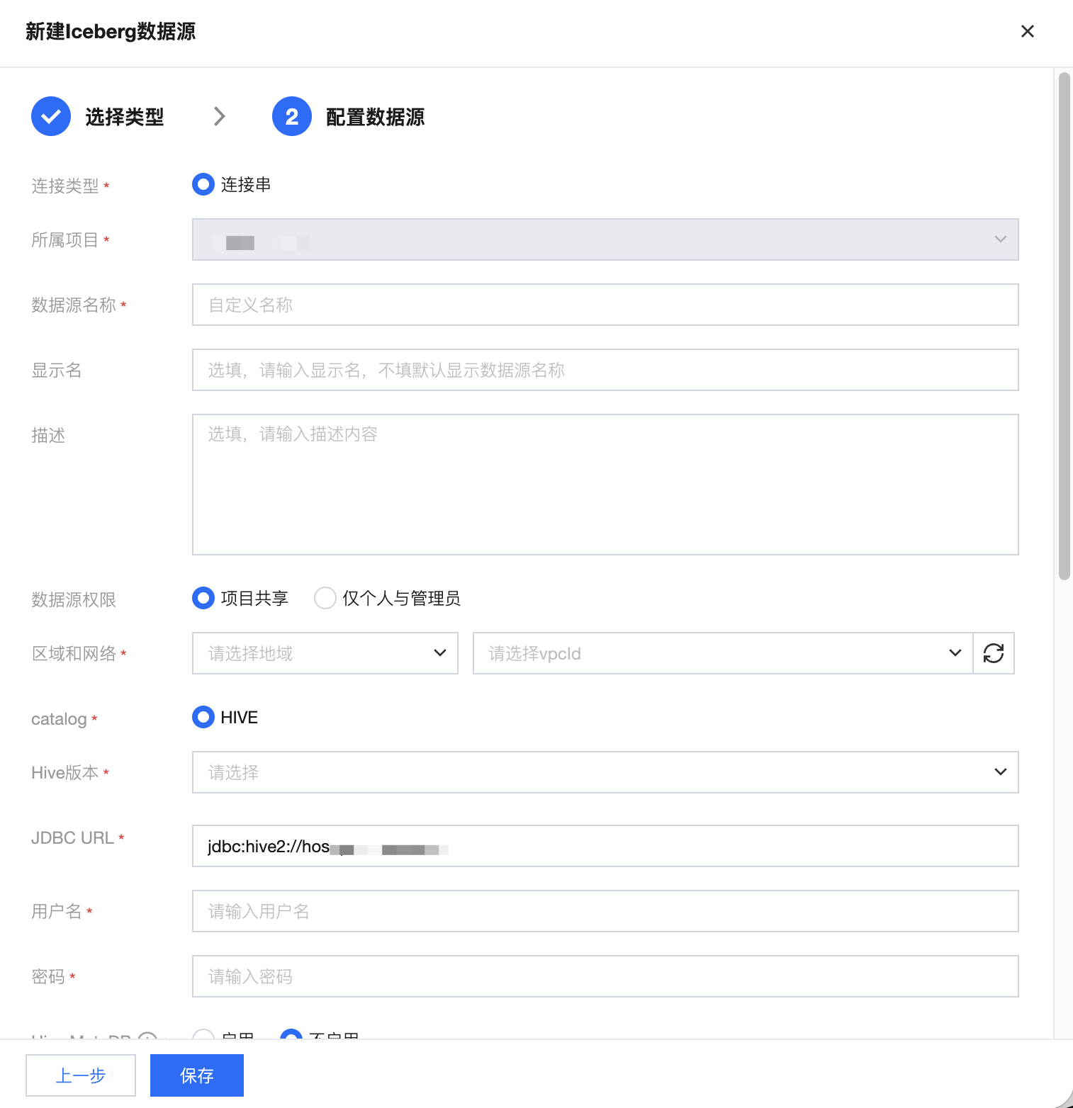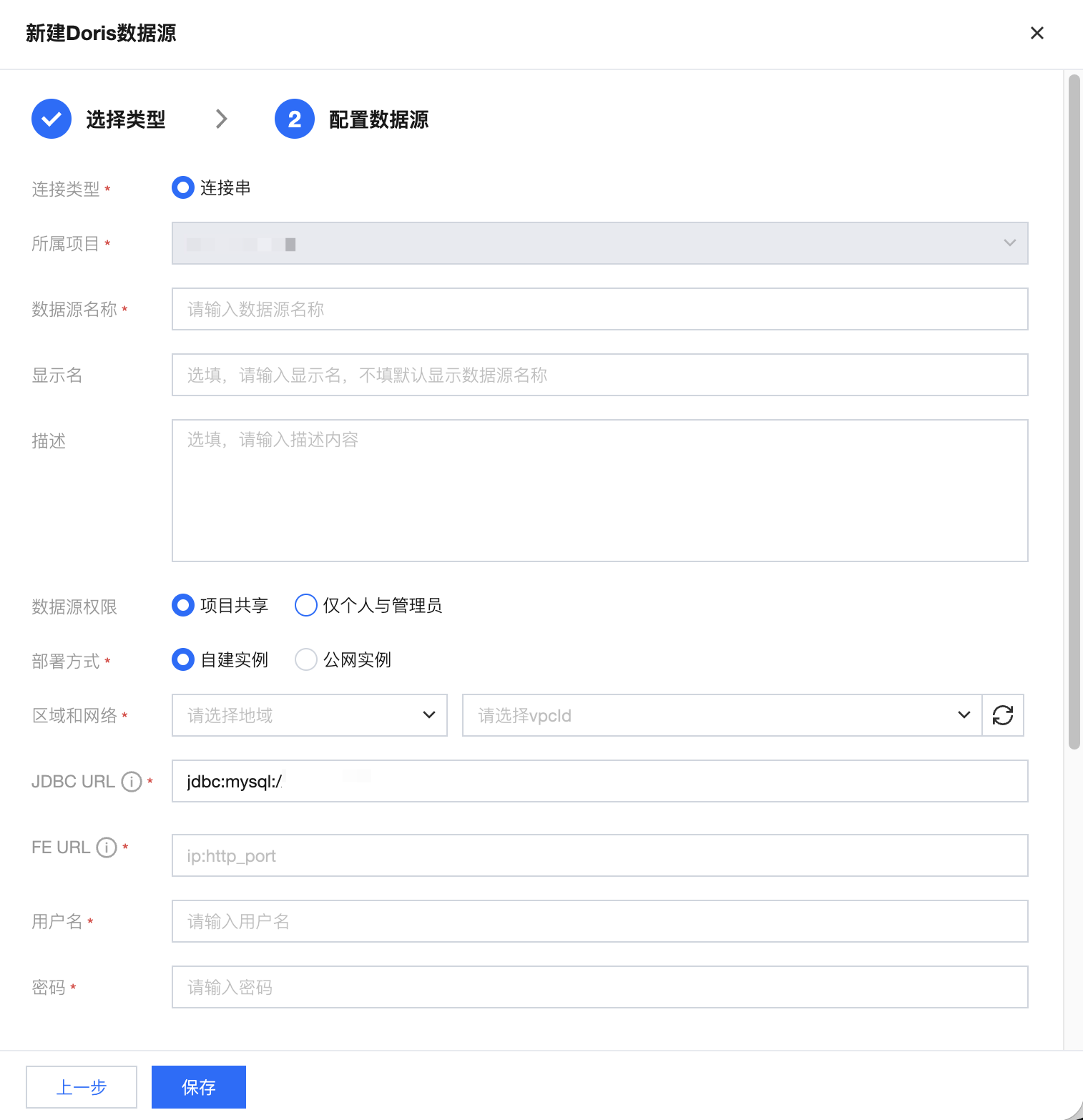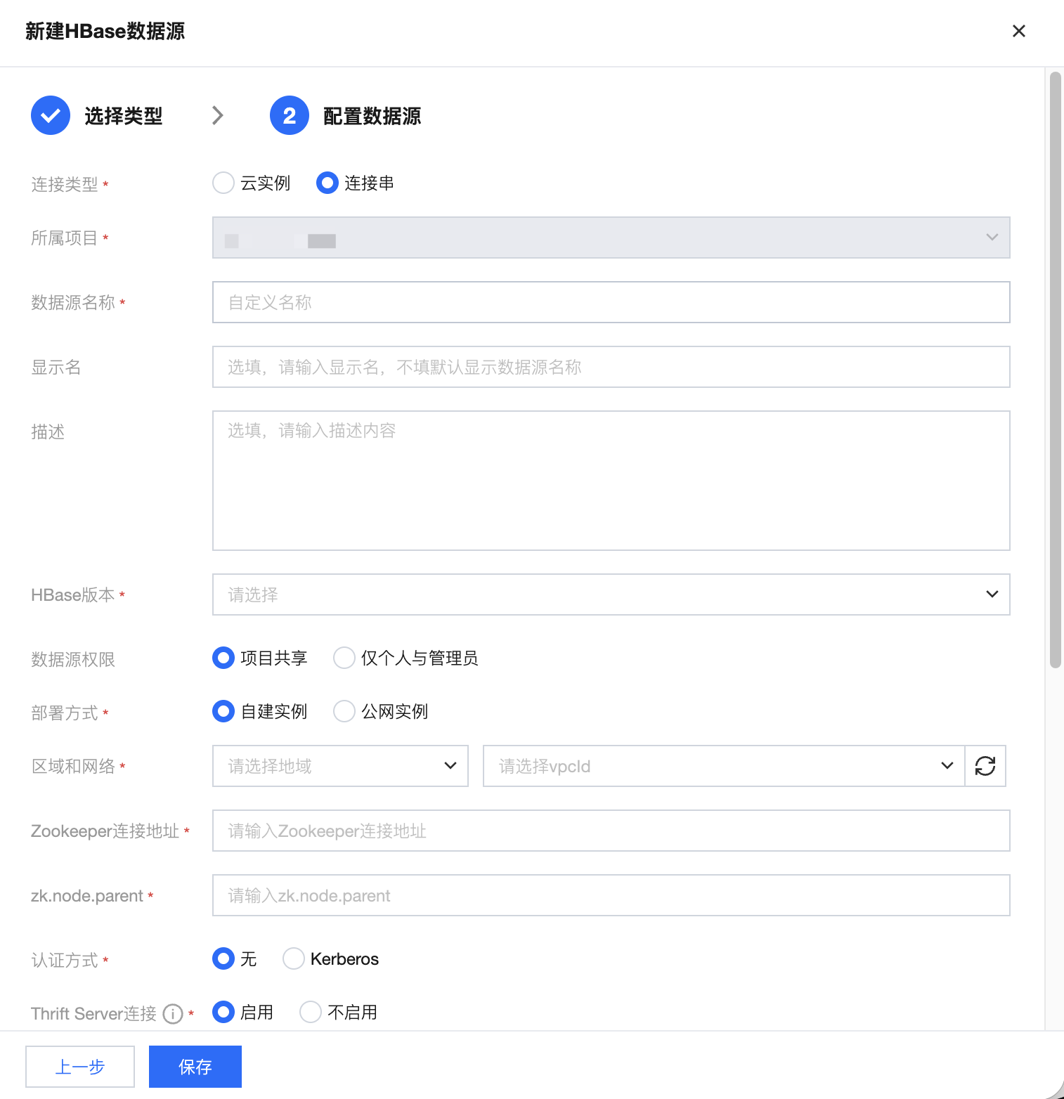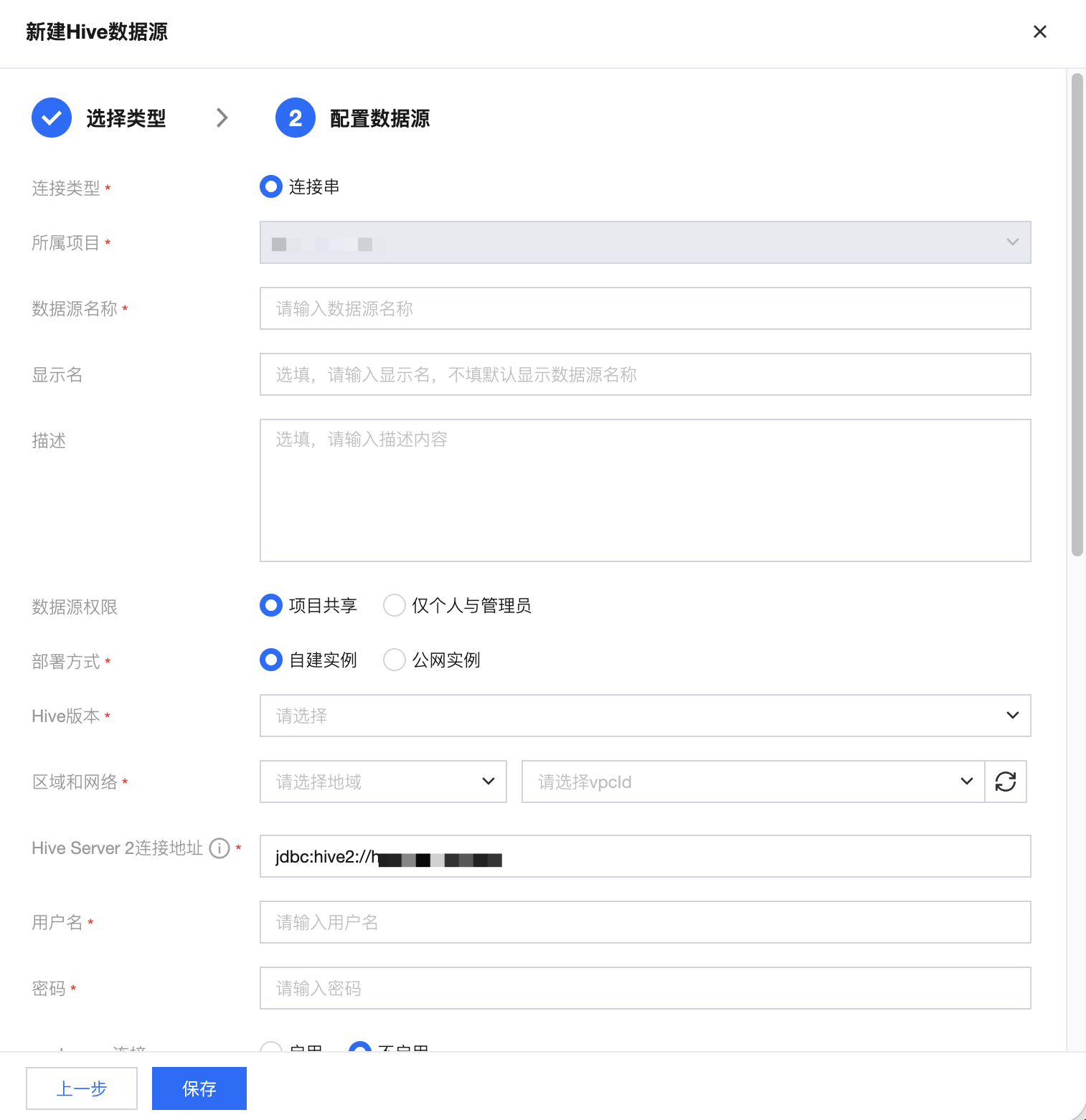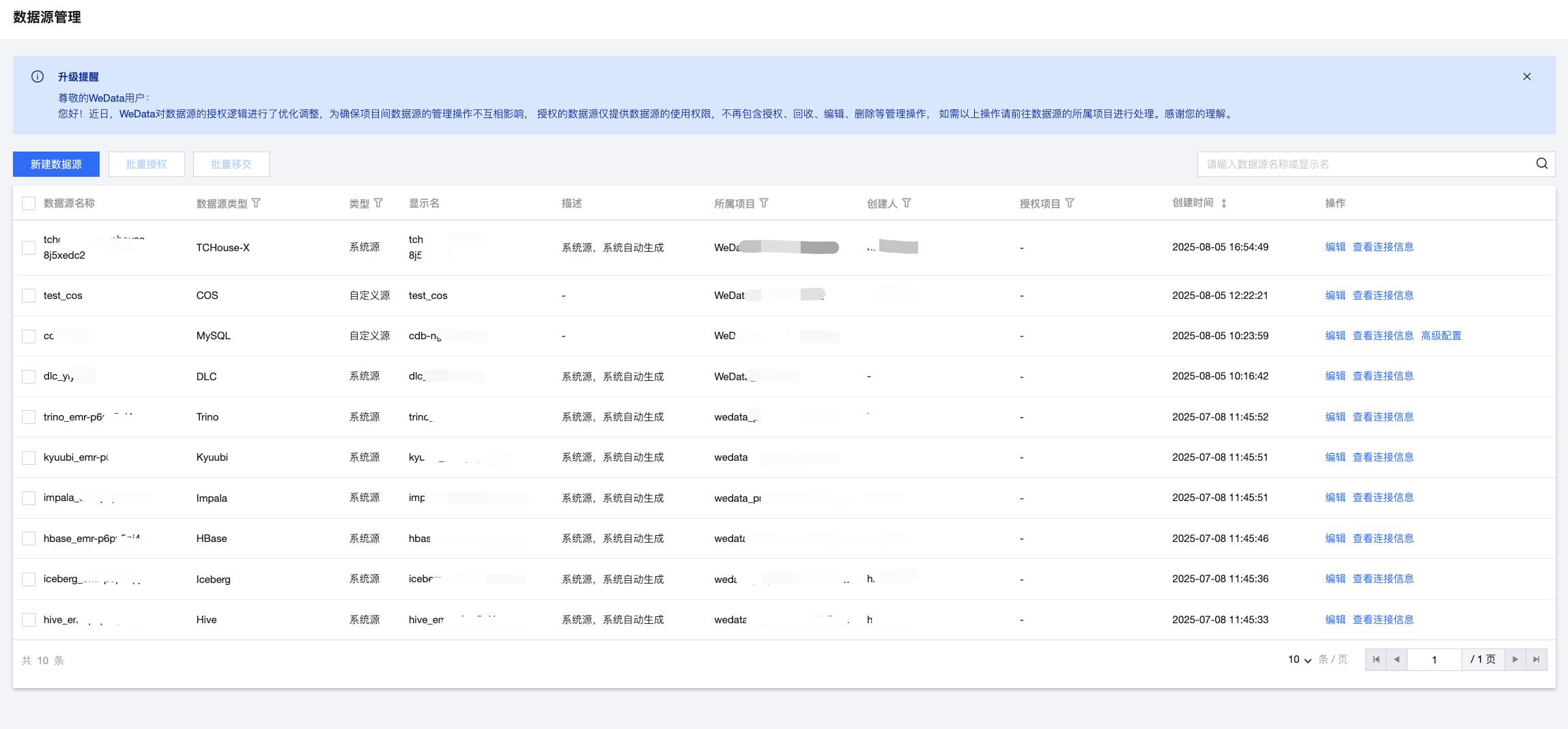 所属项目 | 当前数据源创建时的归属项目 |