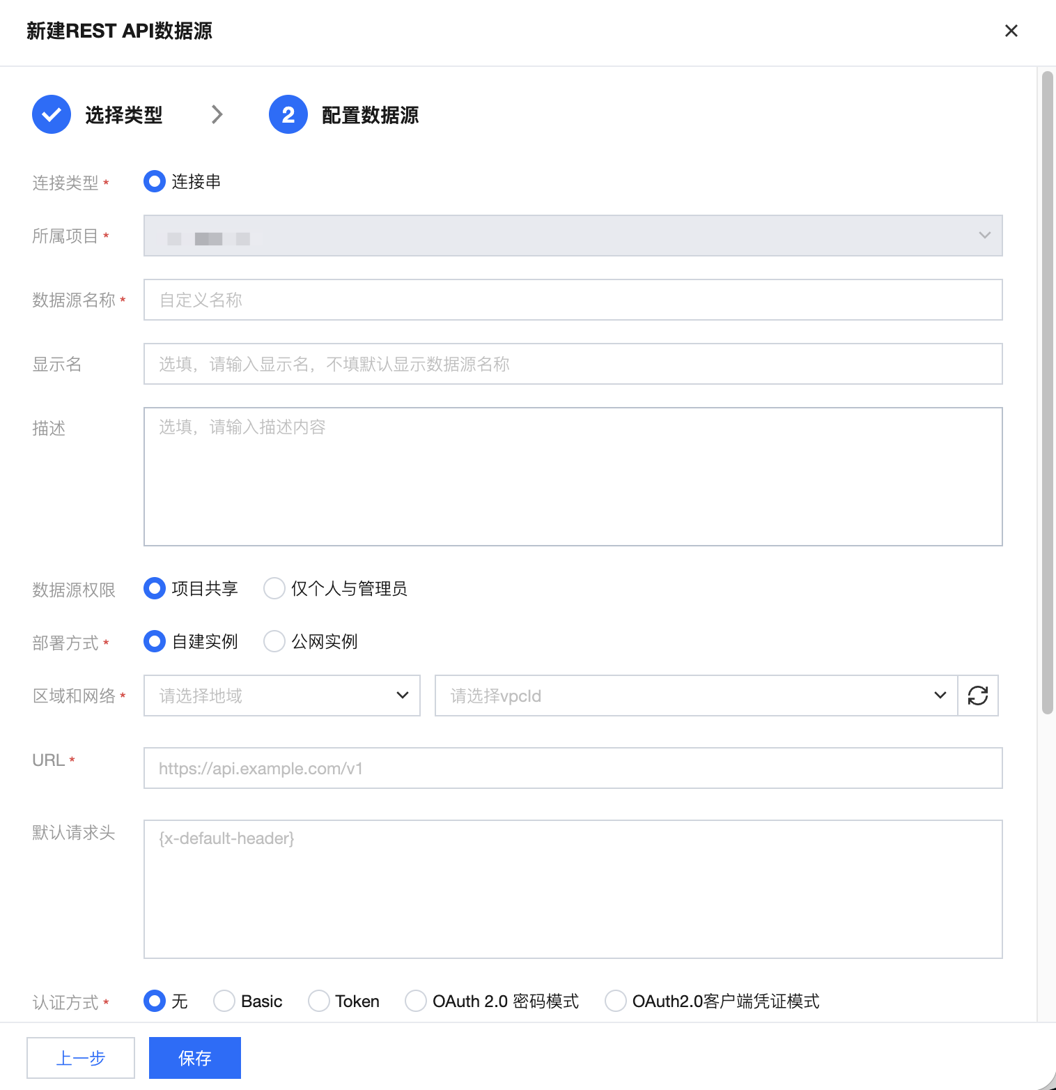 数据源权限 | 选择项目共享或仅个人与管理员可使用 |