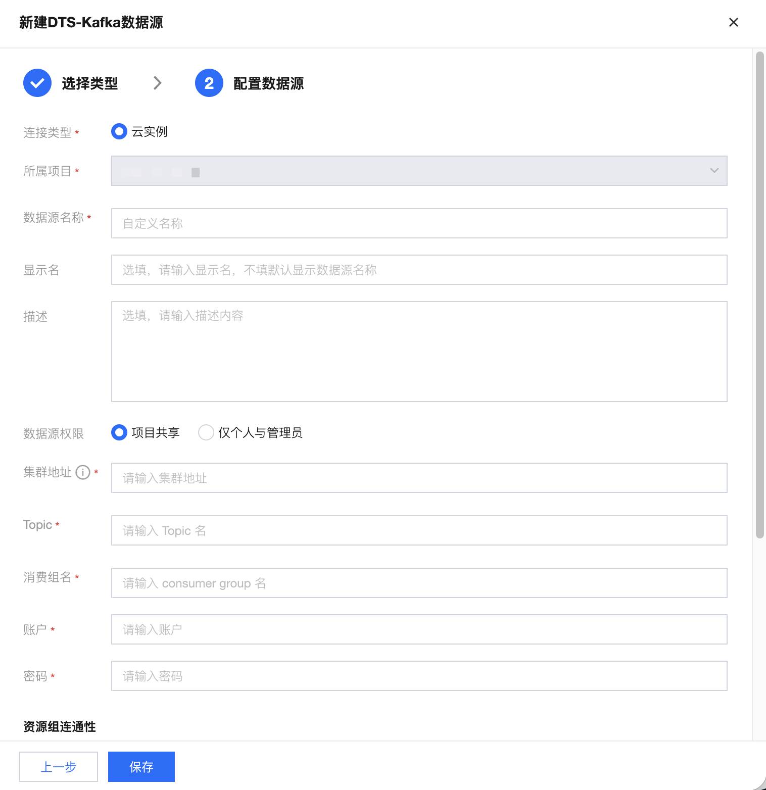 WeData 支持通过云实例方式接入 DTS-Kafka 类型数据源。