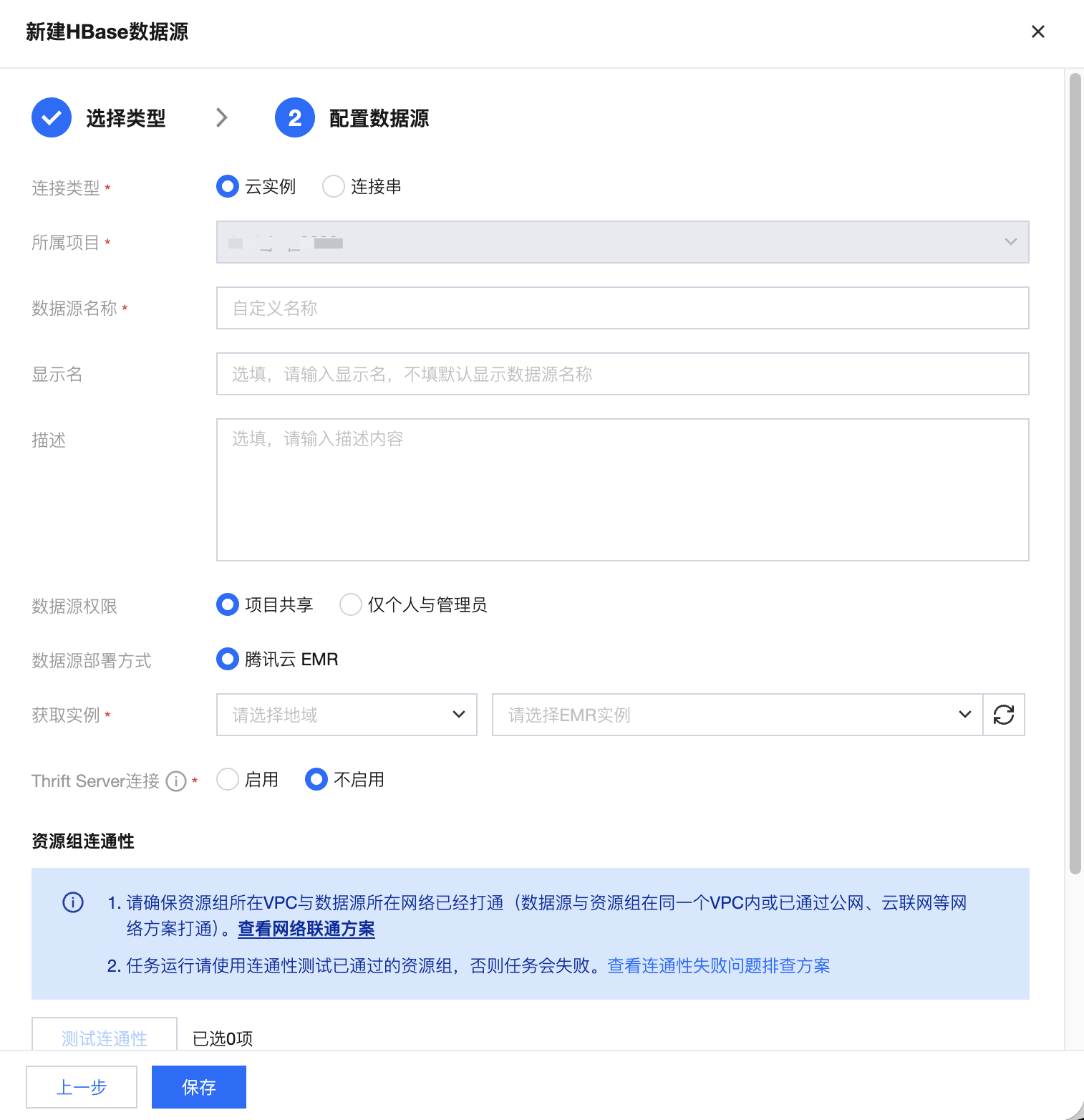 WeData 目前支持通过腾讯云 EMR 云实例和连接串两种方式引入 HBase 数据源。