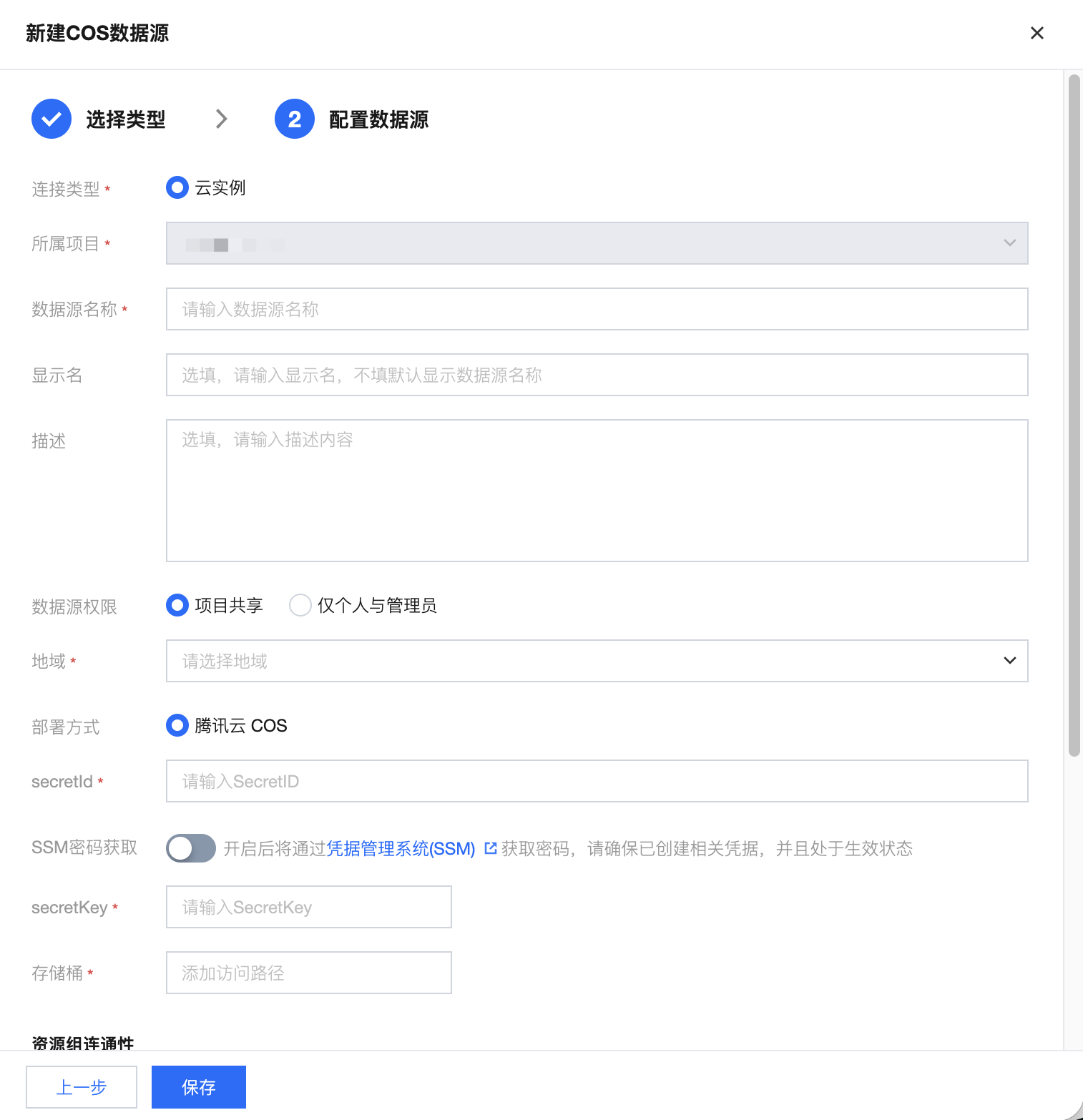 腾讯云 WeData 目前支持云实例方式引入 COS 数据源。