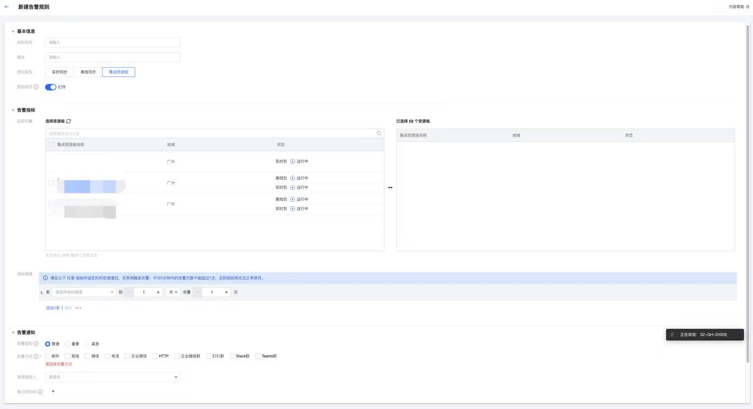 单击配置告警会进入资源组绑定的第一个项目中进行告警规则创建。