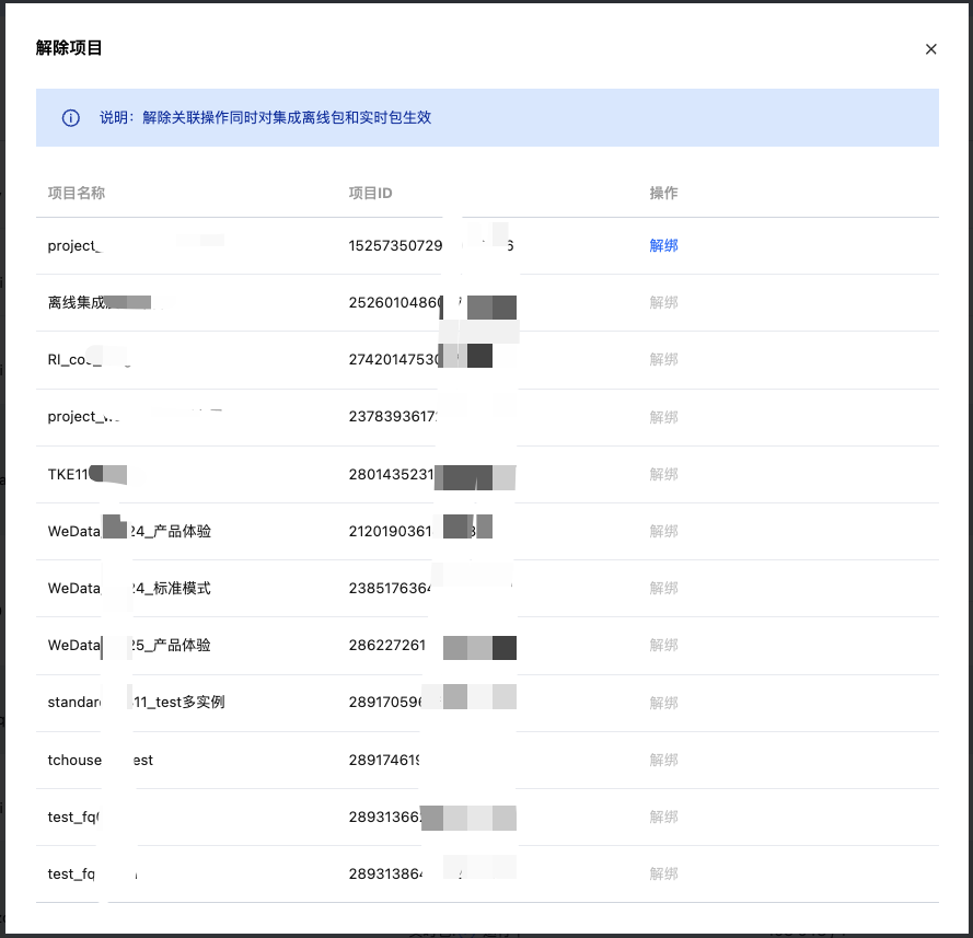 解除关联需当前项目空间下不存在正在运行的任务,否则将解除失败。