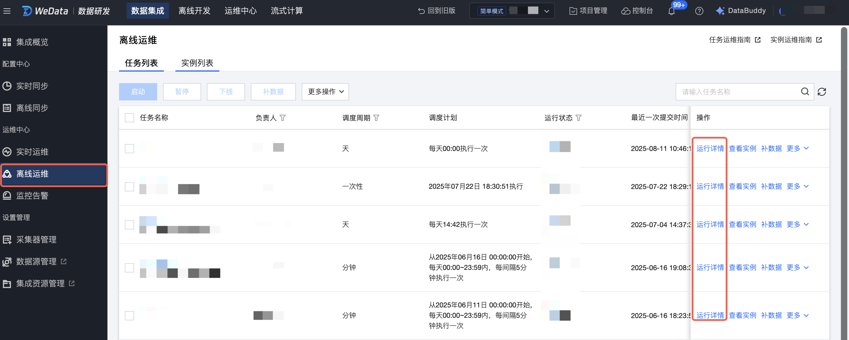 在项目列表中找到目标项目,单击数据集成 > 离线运维 > 运行详情 > 告警订阅,即可进入告警订阅界面。