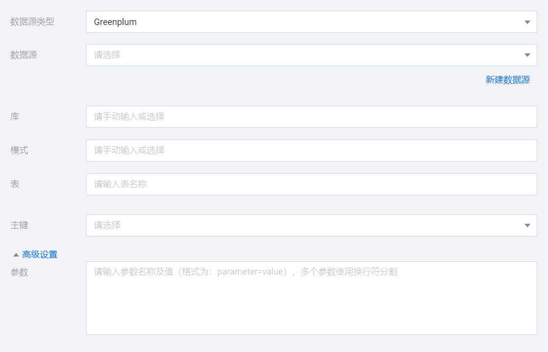 选择当前项目中可用的 Greenplum 数据源。