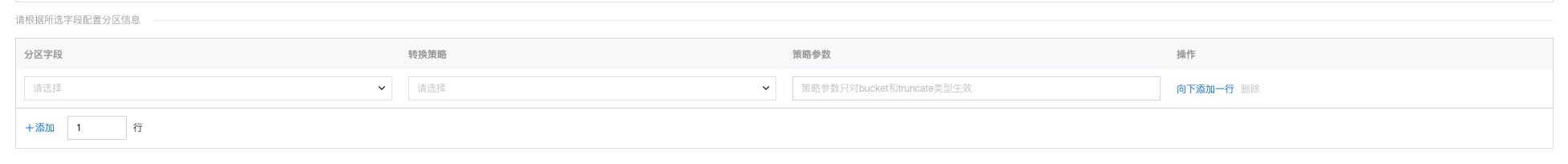| 是否分区表 | 选择表是否为分区表,当该表为分区表时,需要填写分区信息: ![]() |