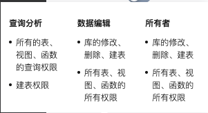 权限配置 | 访问类型 | 包括:查询分析、数据编辑、所有者;具体权限如下: ![]() |