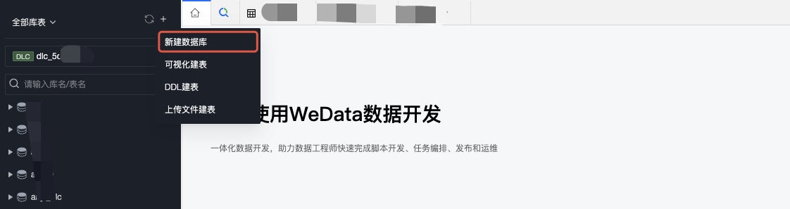 当前 WeData 数据管理支持 EMR、DLC 引擎中系统源的 Hive 与 DLC 数据库表创建。