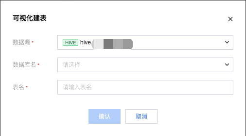 1. 使用 EMR 作为存算引擎时,可以在数据管理中的 Hive 数据源下创建 Hive 数据表。