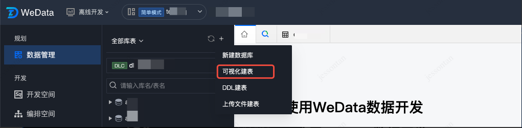 当前 DLC 建表只支持可视化建表,DDL 建表尚未支持,请直接在数据开发的 SQL 语句中创建。