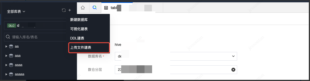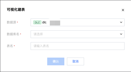 1. 使用 DLC 作为存算引擎时,可以在数据管理中的 DLC 数据源下创建 DLC 数据表。