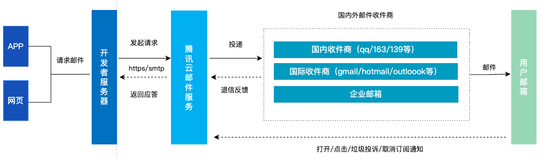 邮件推送(Simple Email Service,SES)是一款基于云端的平台化服务,为企业提供安全稳定、简单快速、精准高效的营销、通知和事务邮件的推送服务。我们提供精准智能的数据分析,可直观看到邮件发送的送达率、开启率和点击率等。同时我们为企业提供专属定制的启动计划,帮助企业维护 IP 的声誉,提高邮件发送的质量。我们的服务范围覆盖200+国家/地区,可即时触达全球各地的邮箱地址。目前我们已和多家客户达成合作,包括腾讯多个游戏娱乐产品,在服务稳定性和邮件送达率上均有优异表现。