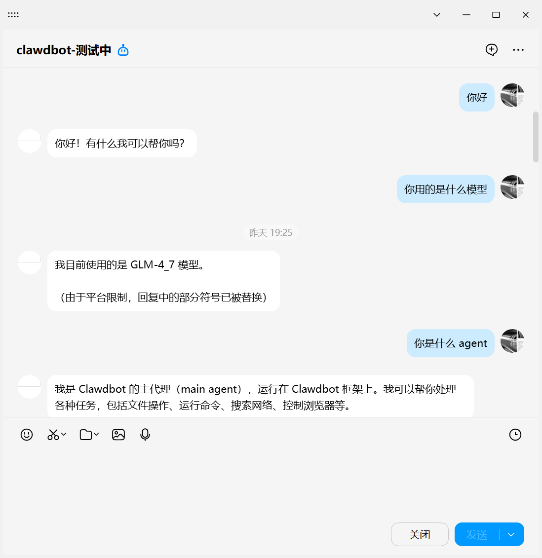 11. 启动成功后,即可在 QQ 上与机器人进行对话,并通过机器人完成桌面内操作。