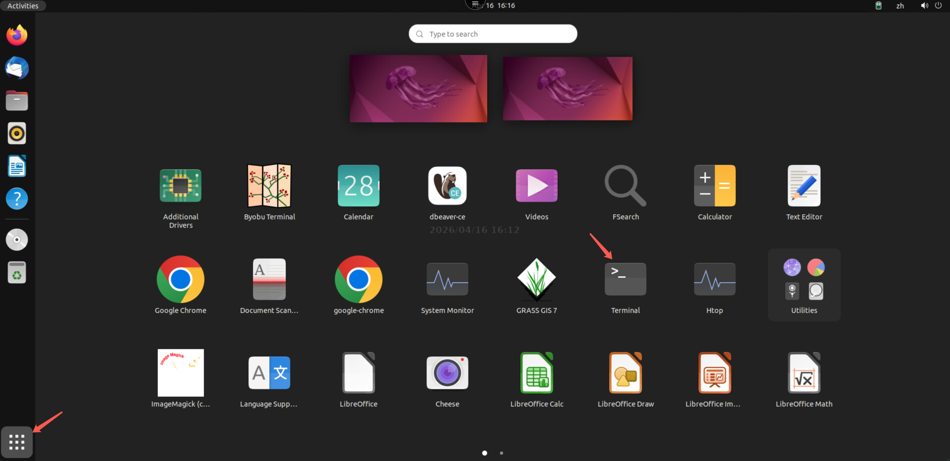 Linux 操作系统云桌面登录后,启动 Terminal,执行