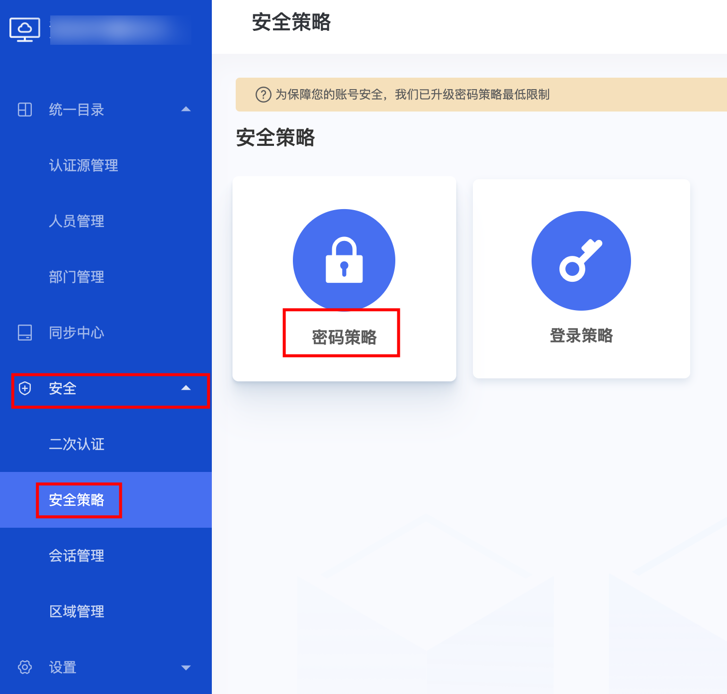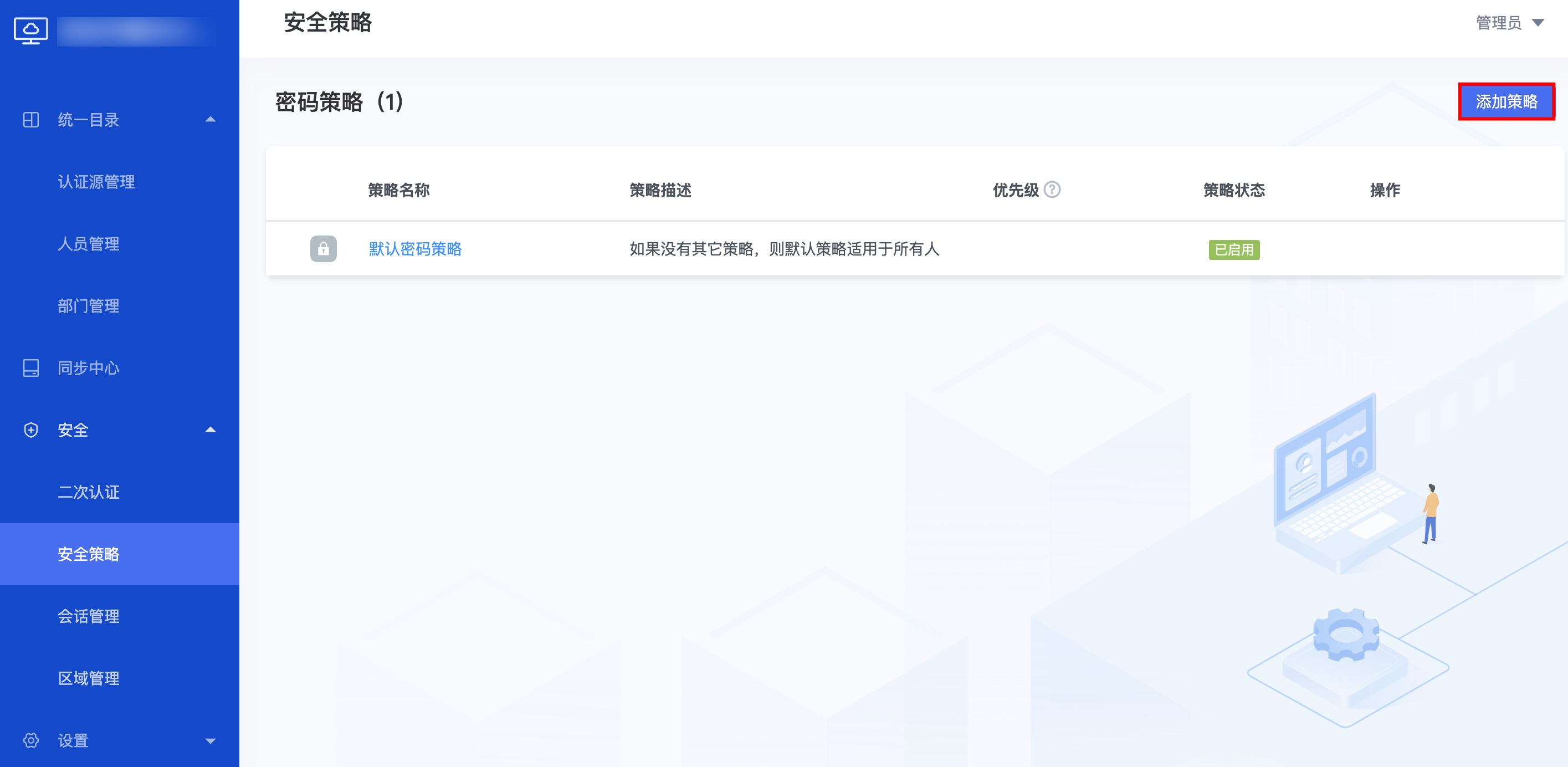 2. 单击安全 > 安全策略 > 密码策略,进入密码策略管理页面,单击添加策略。