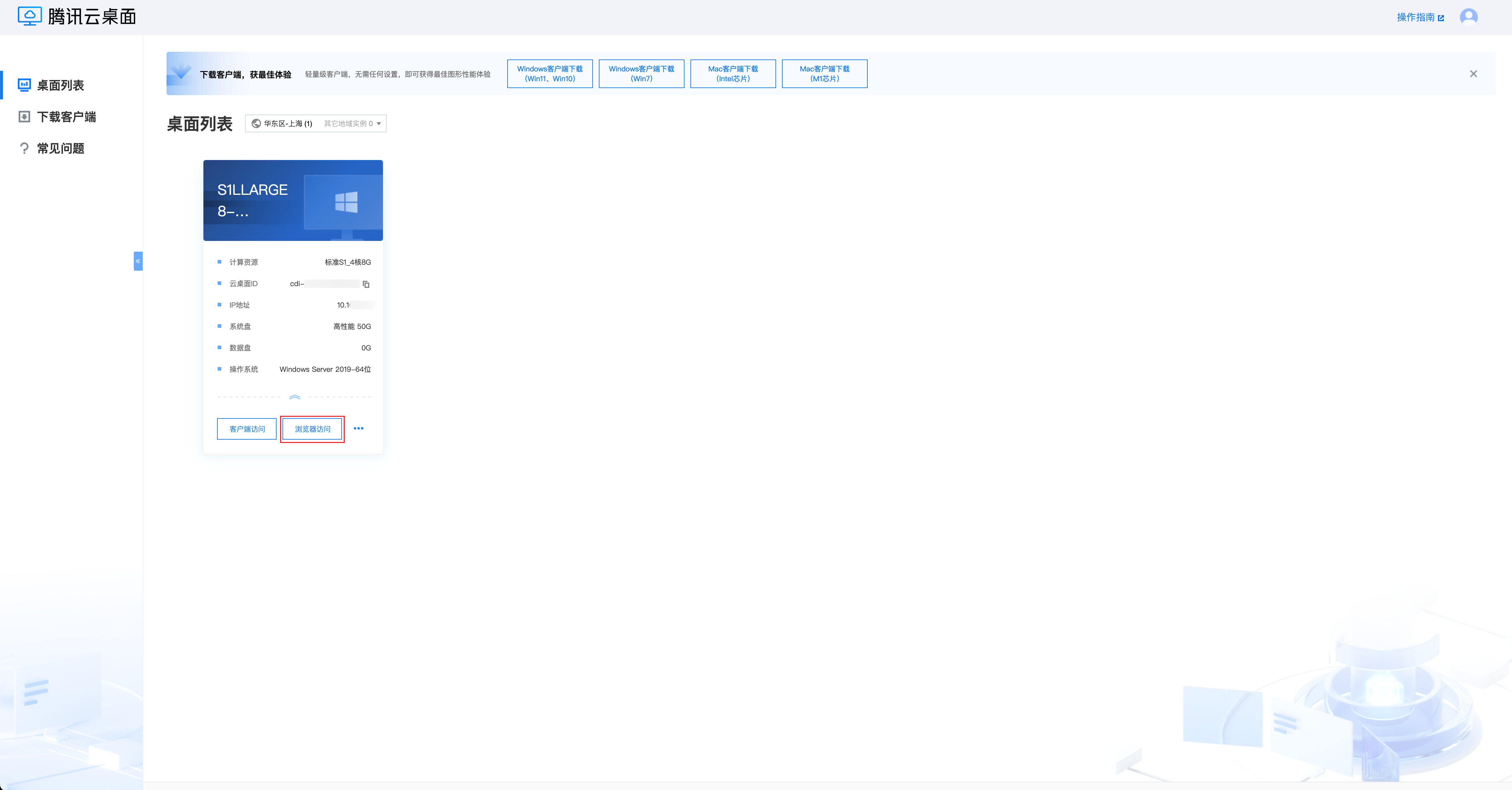 为了获得更好的云桌面访问体验,建议您使用客户端访问。
