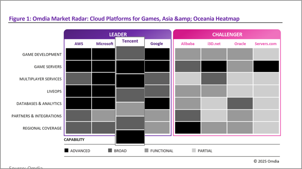 在 Omdia 发布的2025年市场雷达中,腾讯云凭借其在游戏领域的深厚积累和卓越表现,被评为领导者 (Leader)。