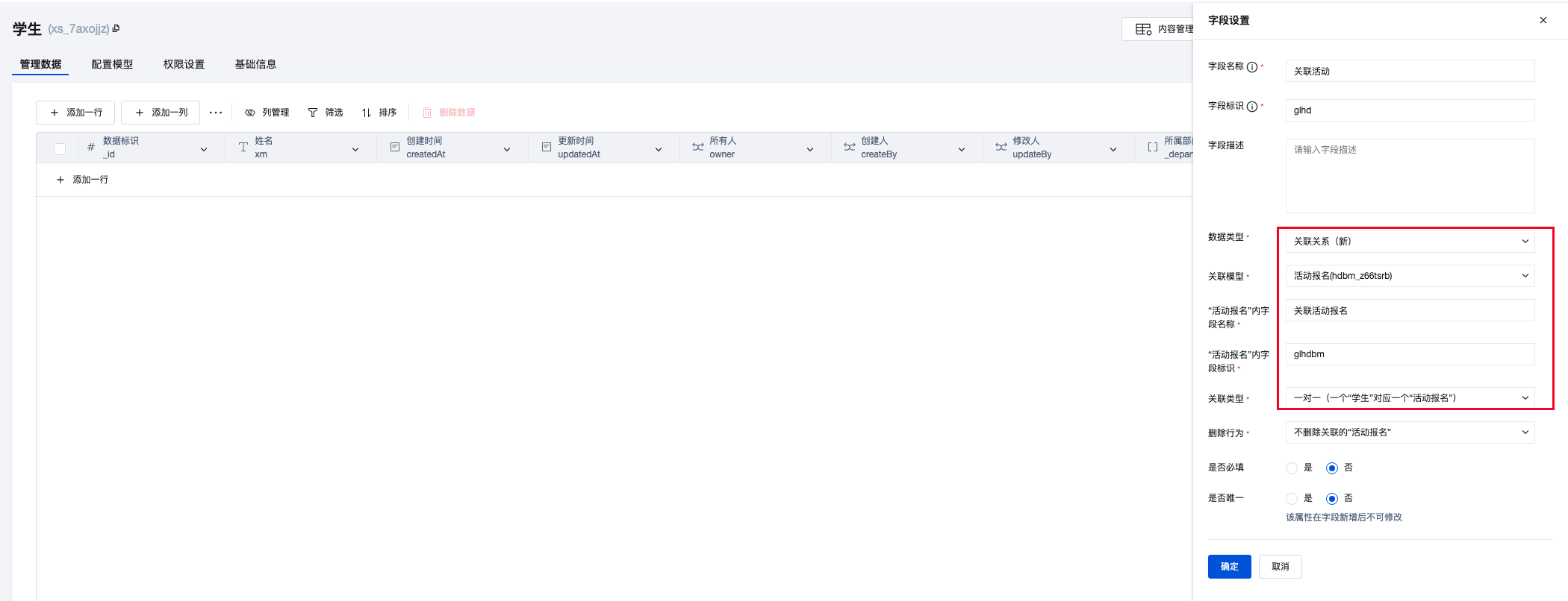 7. 创建完成后,两个模型间已经建立起关联关系,数据的新增、修改和查询将受到此关联关系的约束。