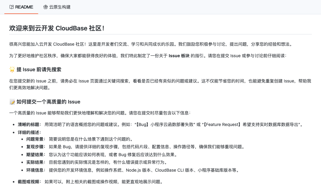 前往 CloudBase 社区按指引提交 issue,我们将尽快为您处理。
