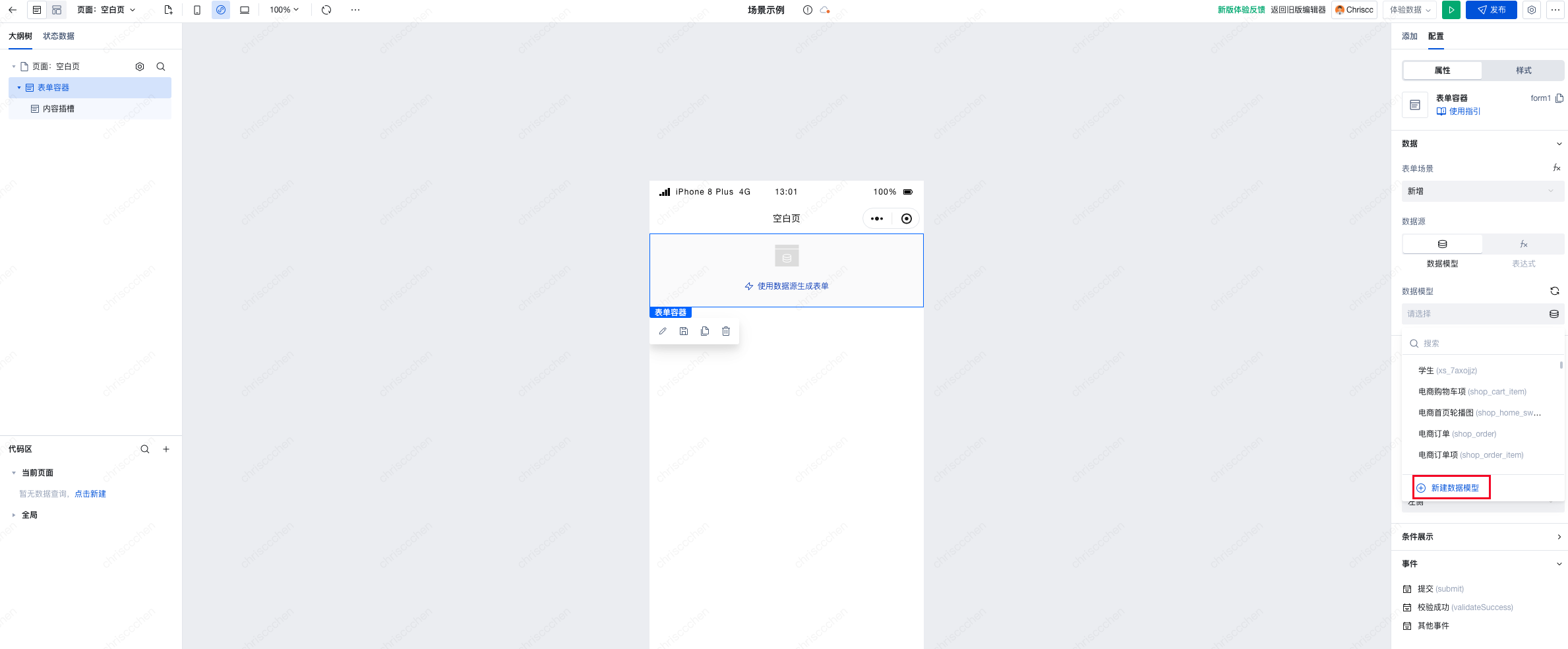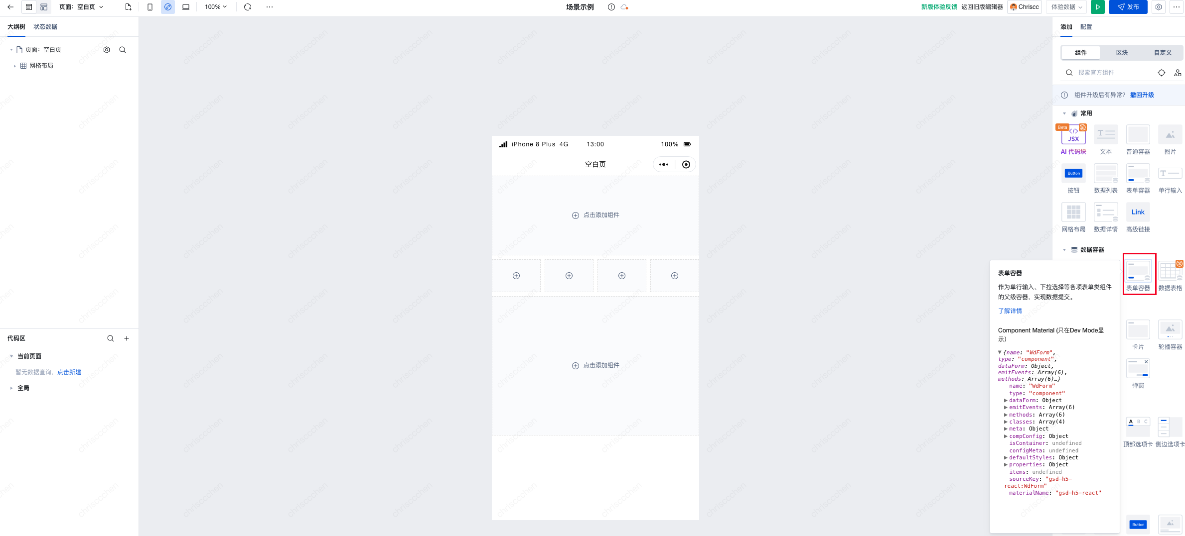 1. 页面中添加一个表单容器组件。