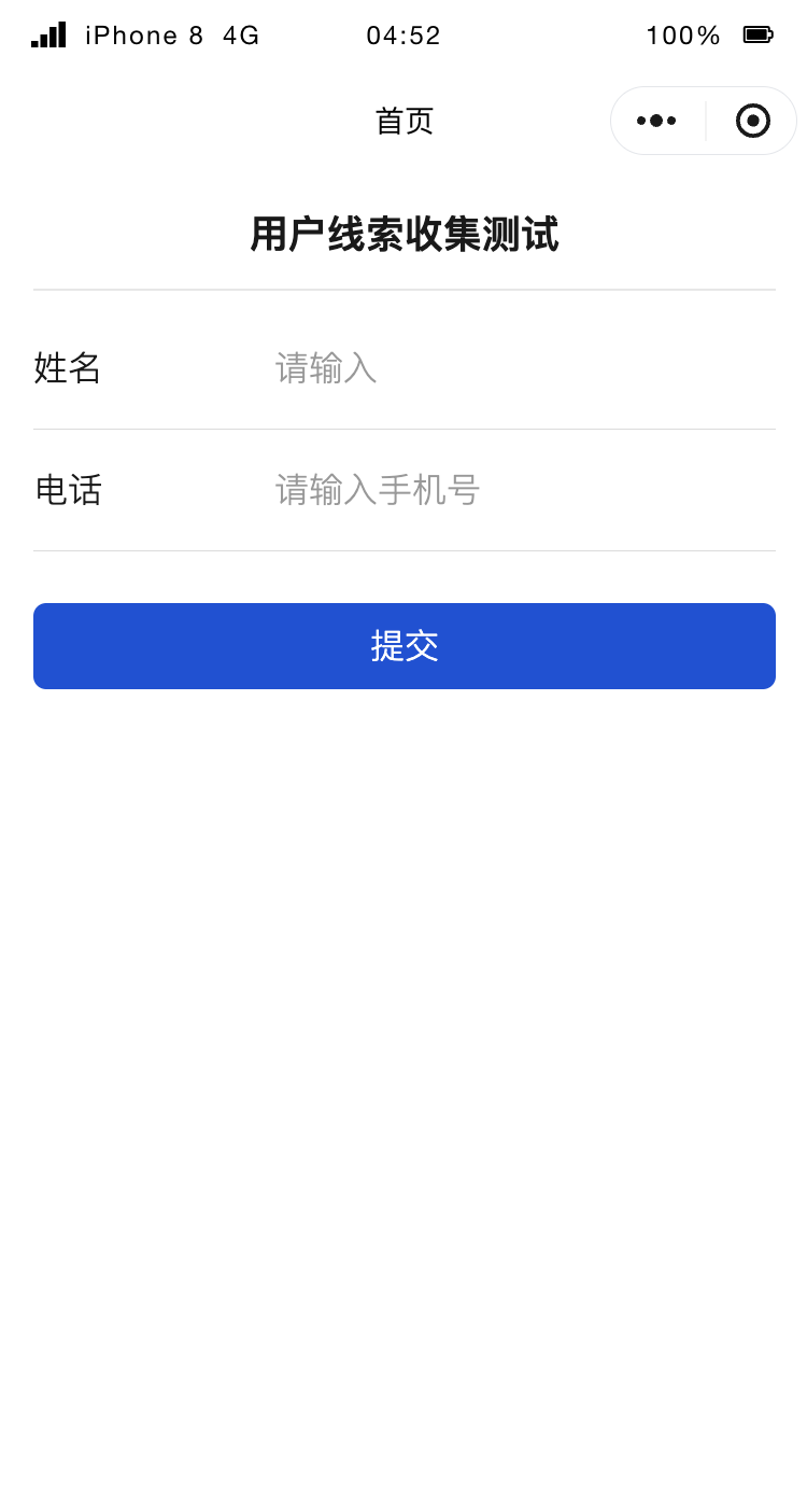 1. 应用发布后移动端信息输入页面展示。您可在此页面输入数据并单击提交。