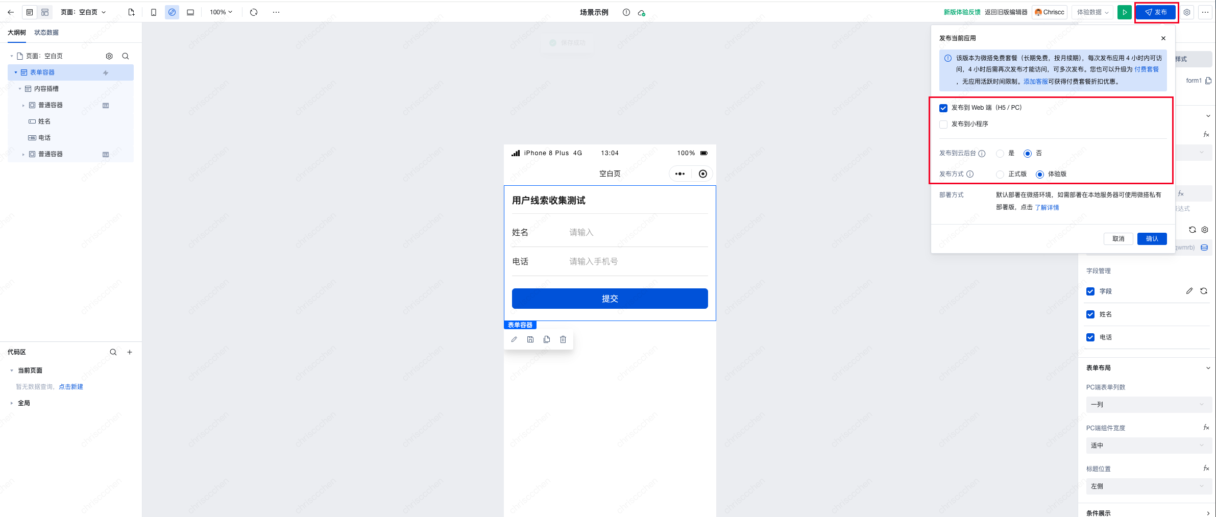本文主要介绍如何通过微搭低代码平台快速搭建简单的表单应用(获取目标客户电话号码),只需以下四步即可完成应用的构建: