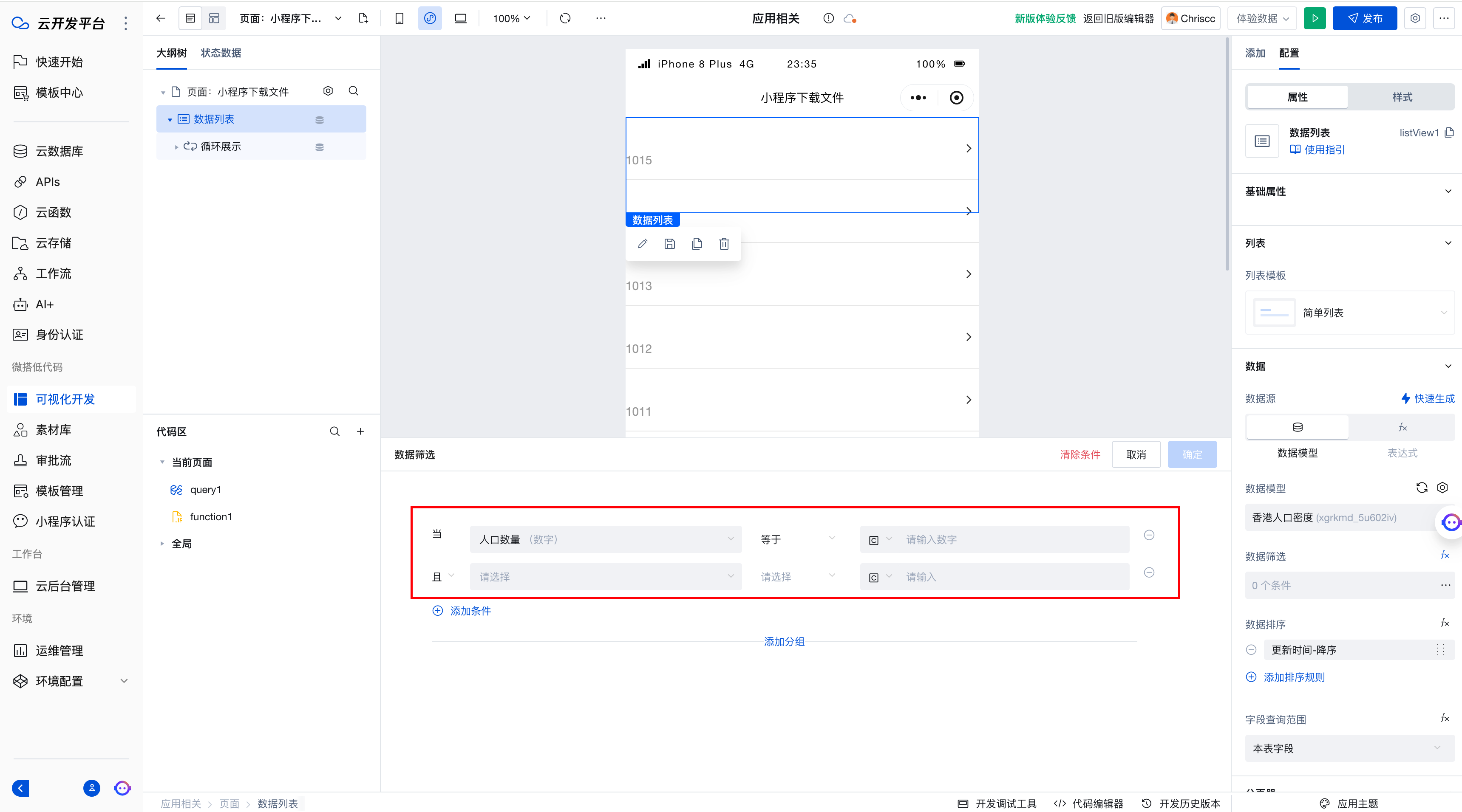 微搭平台在组件内多处使用了数据筛选条件,主要提供微搭平台下的数据按照固定条件进行筛选功能。
