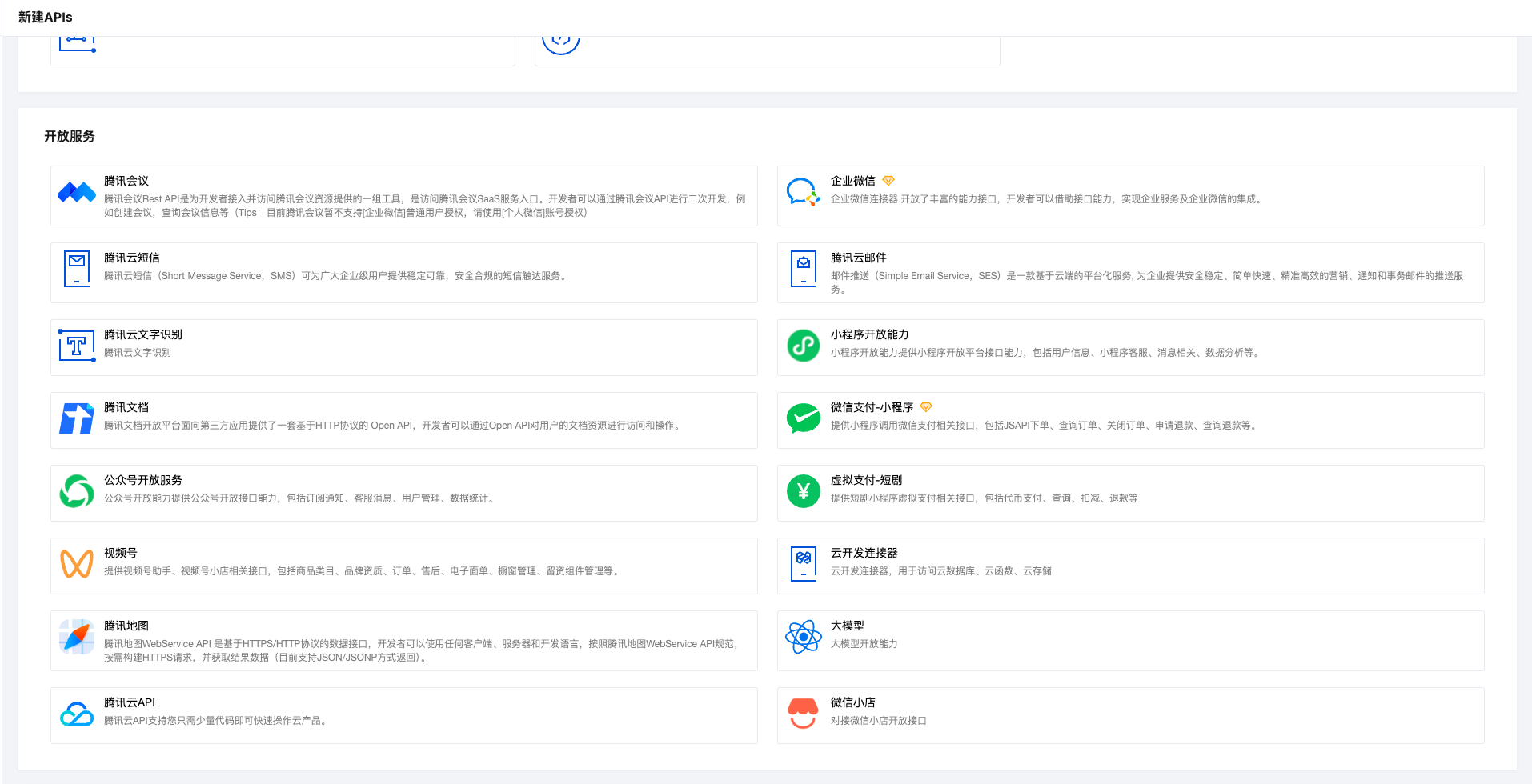 1. 前往 云开发平台 > APIs > 新建 APIs,在开放服务中,选择云开发连接器。