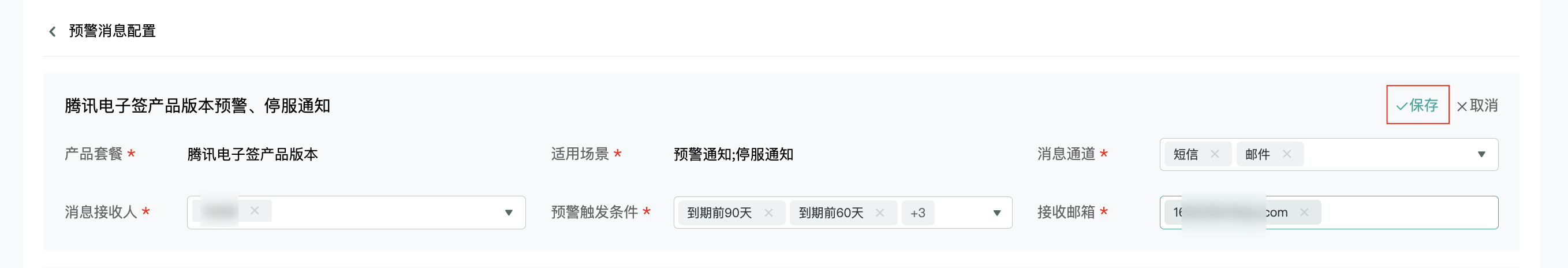 步骤3:保存配置后,费用预警消息配置即可生效。