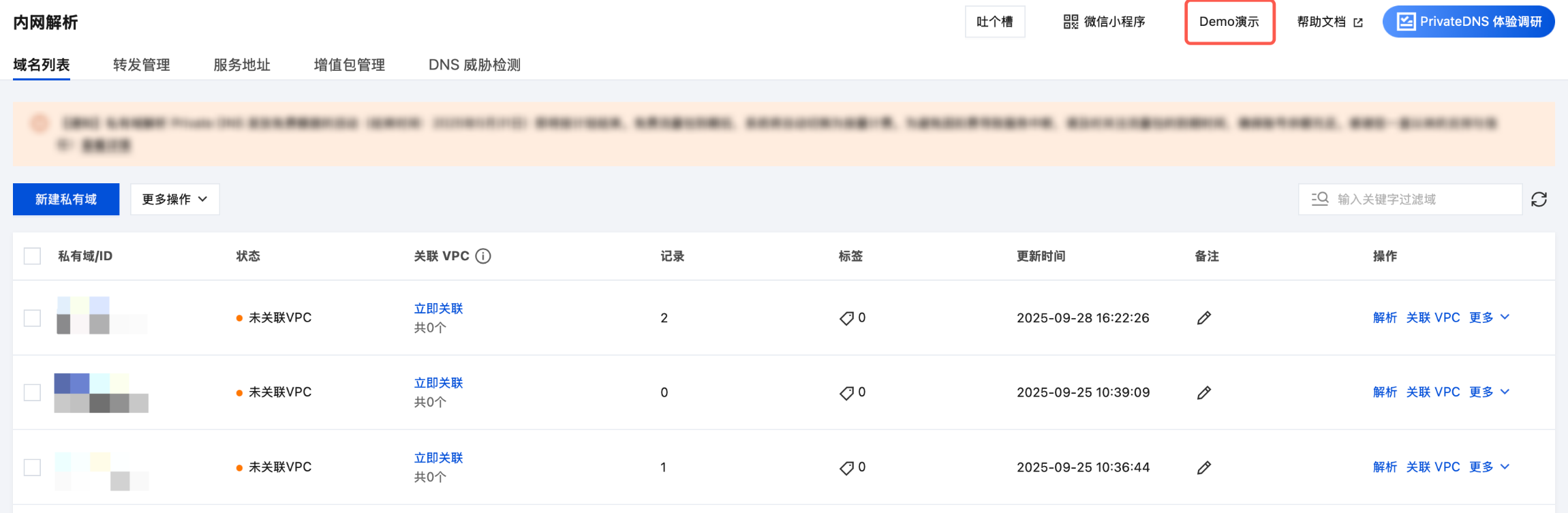 本文档将指导您如何开通 Private DNS 与体验 Private DNS。