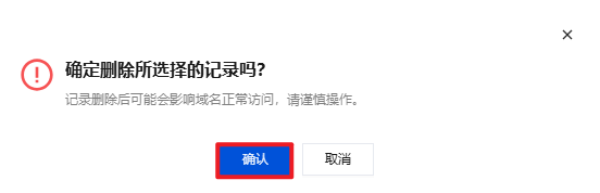 记录删除后可能会影响域名正常访问,请谨慎操作。