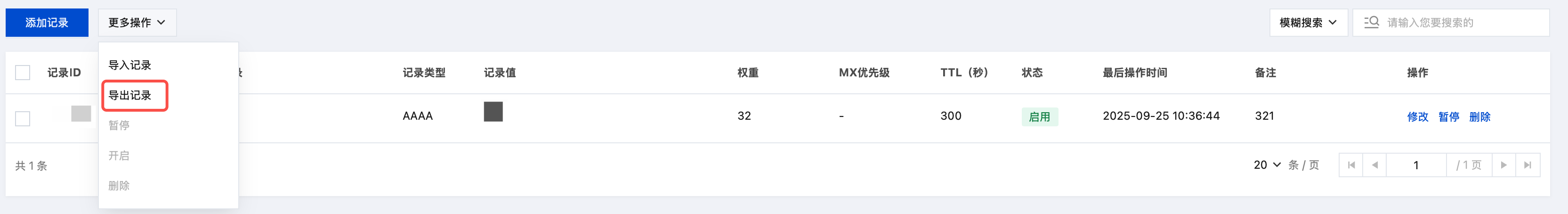 更多操作 > 导出记录