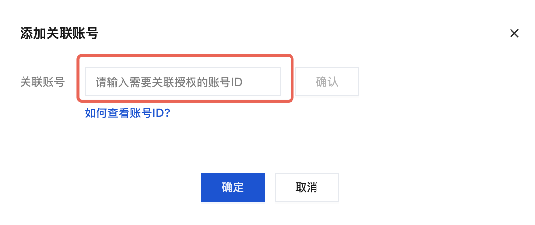 4. 在弹出的添加账号窗口中,输入 B 账号的账号 ID 并单击确定。如下图所示: