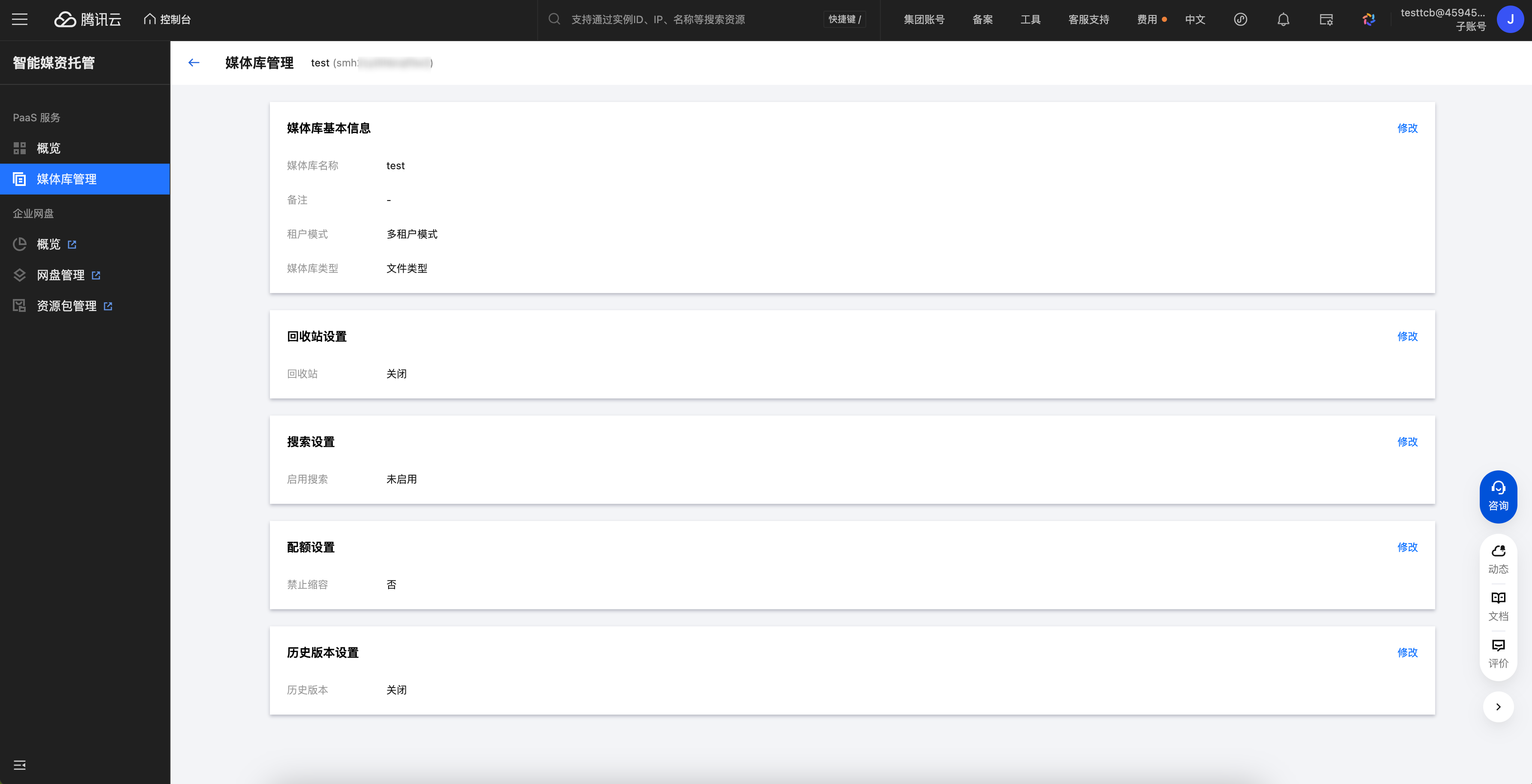 1. 登录 智能媒资托管控制台,单击媒体库管理。