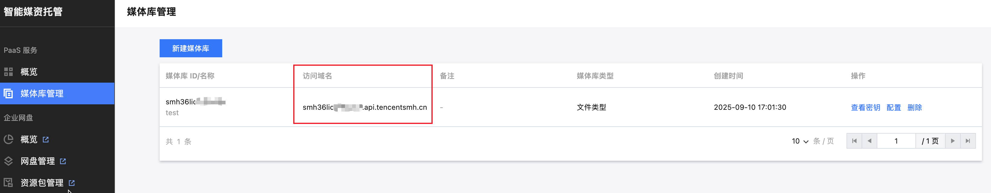 mySMHSimpleUser,初始化一个 SMHCollection 的实例。SMHCollection 提供了访问 SMH 的所有接口,后续文档中的 SMH 均指创建的 SMHCollection 实例。// 初始化 SMHCollection,获取实例val smh: SMHCollection = SMHCollection(context = context,user = mySMHSimpleUser,// 将控制台创建媒体库后显示的“访问域名”赋值给 customHostcustomHost = "<libraryId>.api.tencentsmh.cn")
