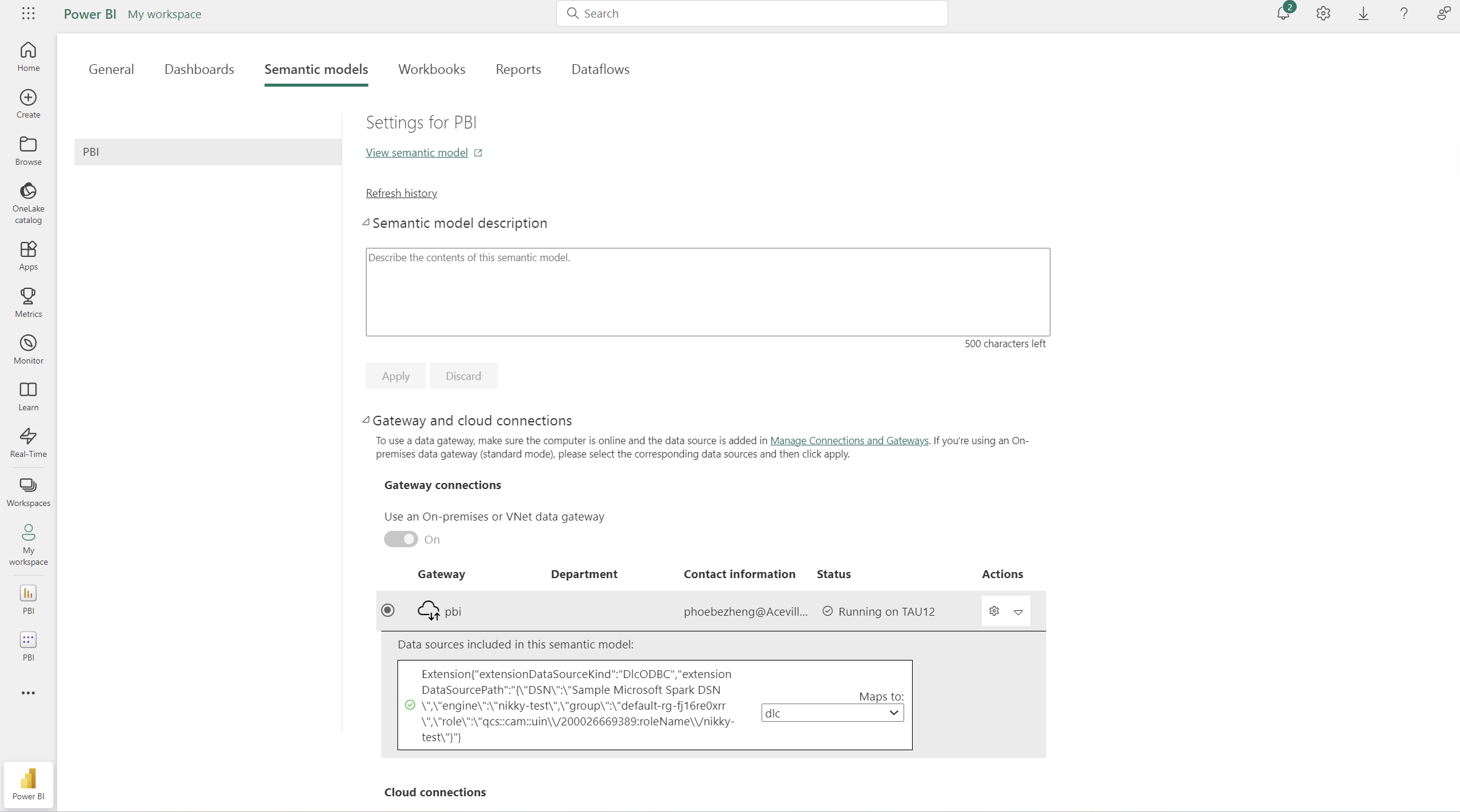 2. 在 Power BI Service 中找到该报表的 Semantic model (语义模型)。