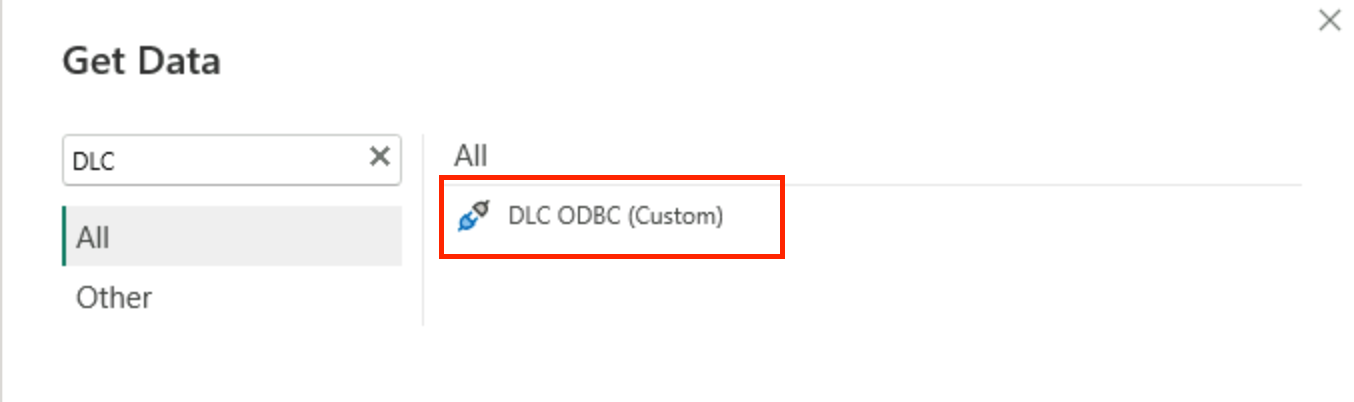 2. 搜索 DLC,选择 DlcODBC (Custom),点击 Connect。
