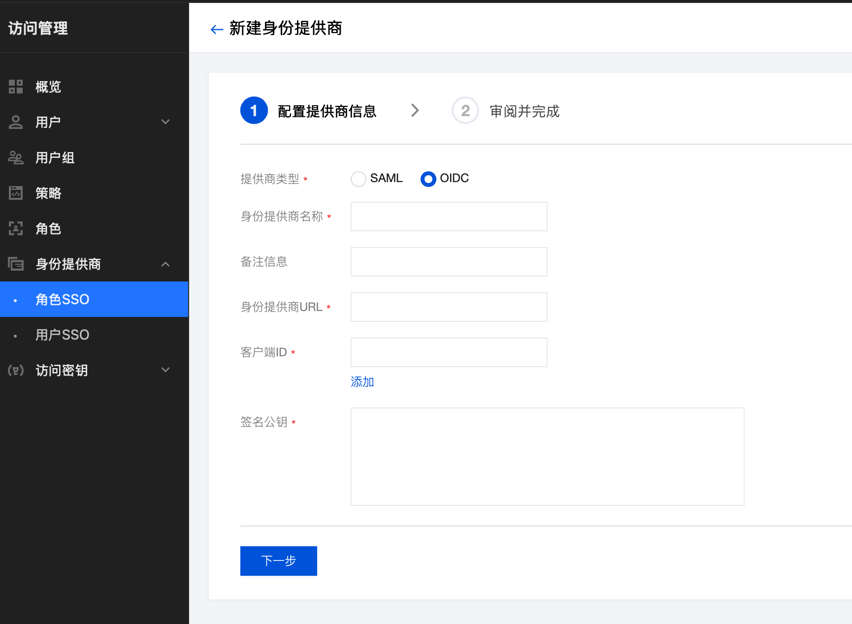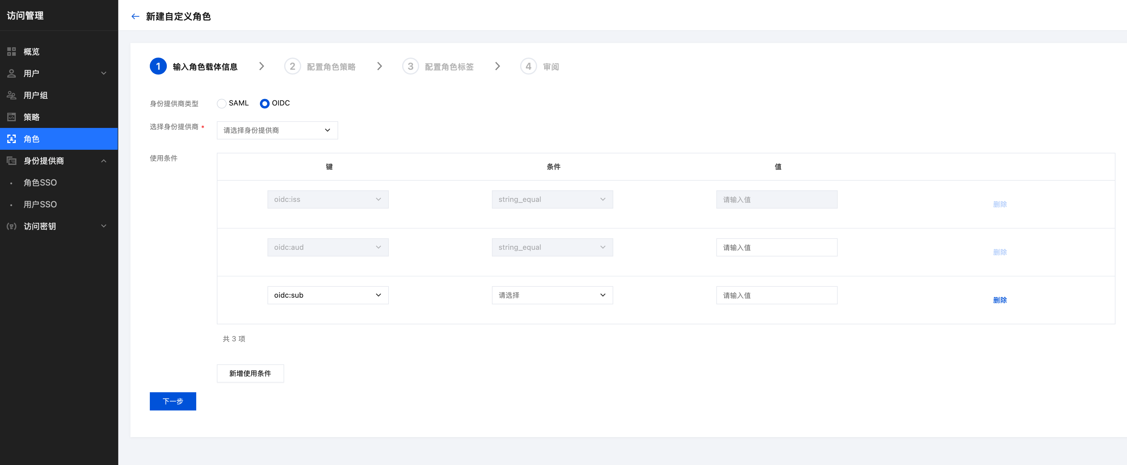 已在 访问管理 (CAM) 中创建了必要的 OIDC 身份提供商和角色(见下文步骤 1)。