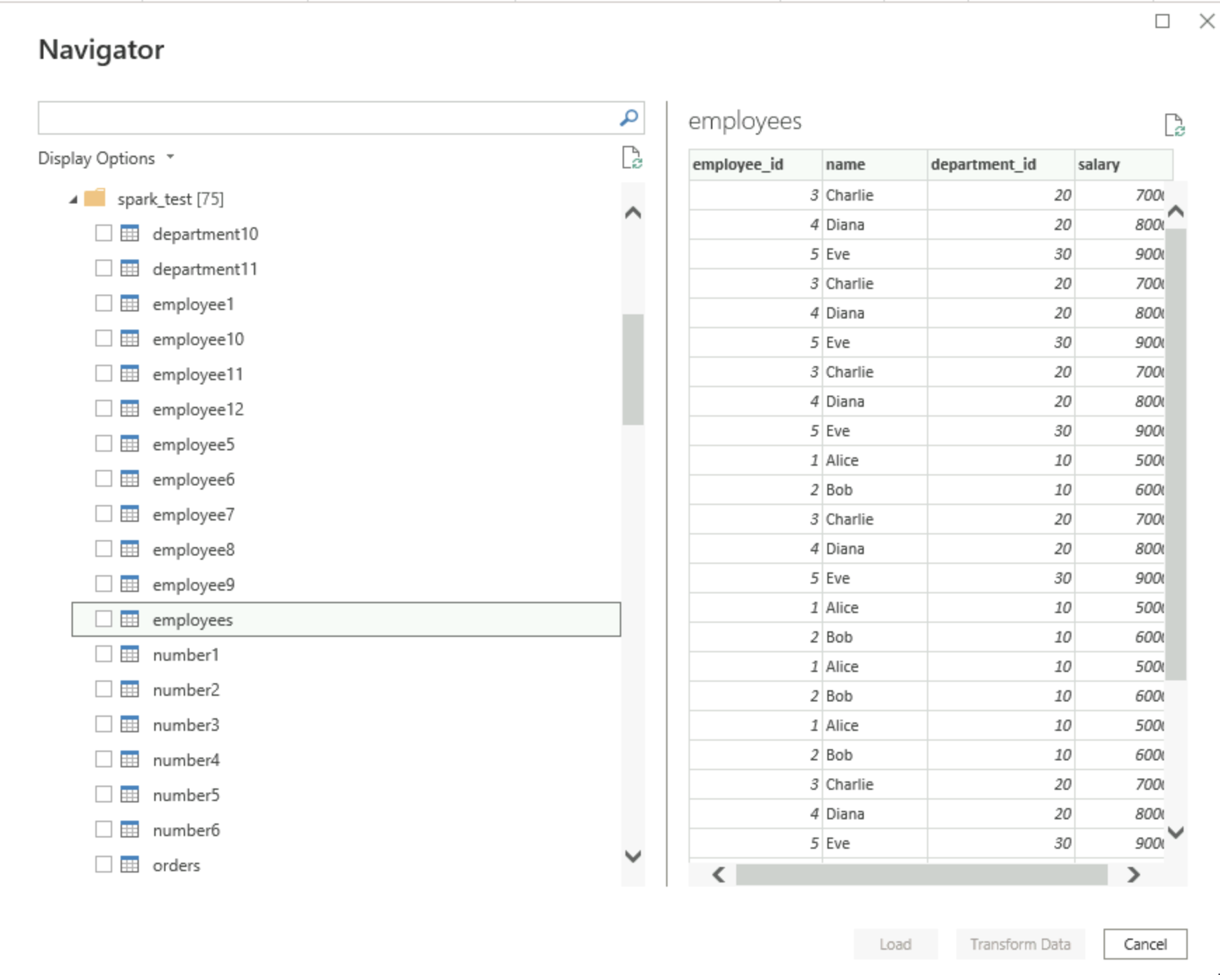 5. 在导航器中预览并勾选数据表,点击 Load (加载)。