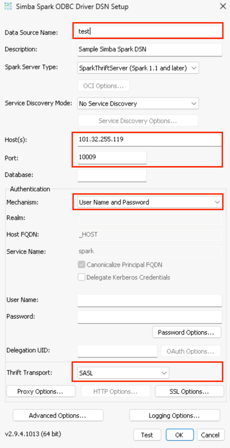 Data Source Name: 自定义名称(例如 DLC_Spark)。