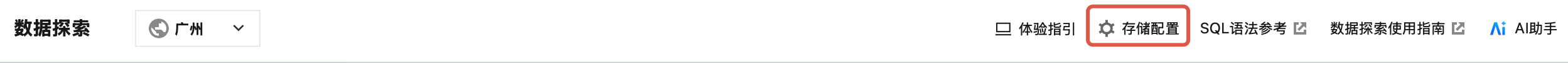 2. 进入数据探索页,单击右上角存储配置,对查询结果保存方式进行配置。