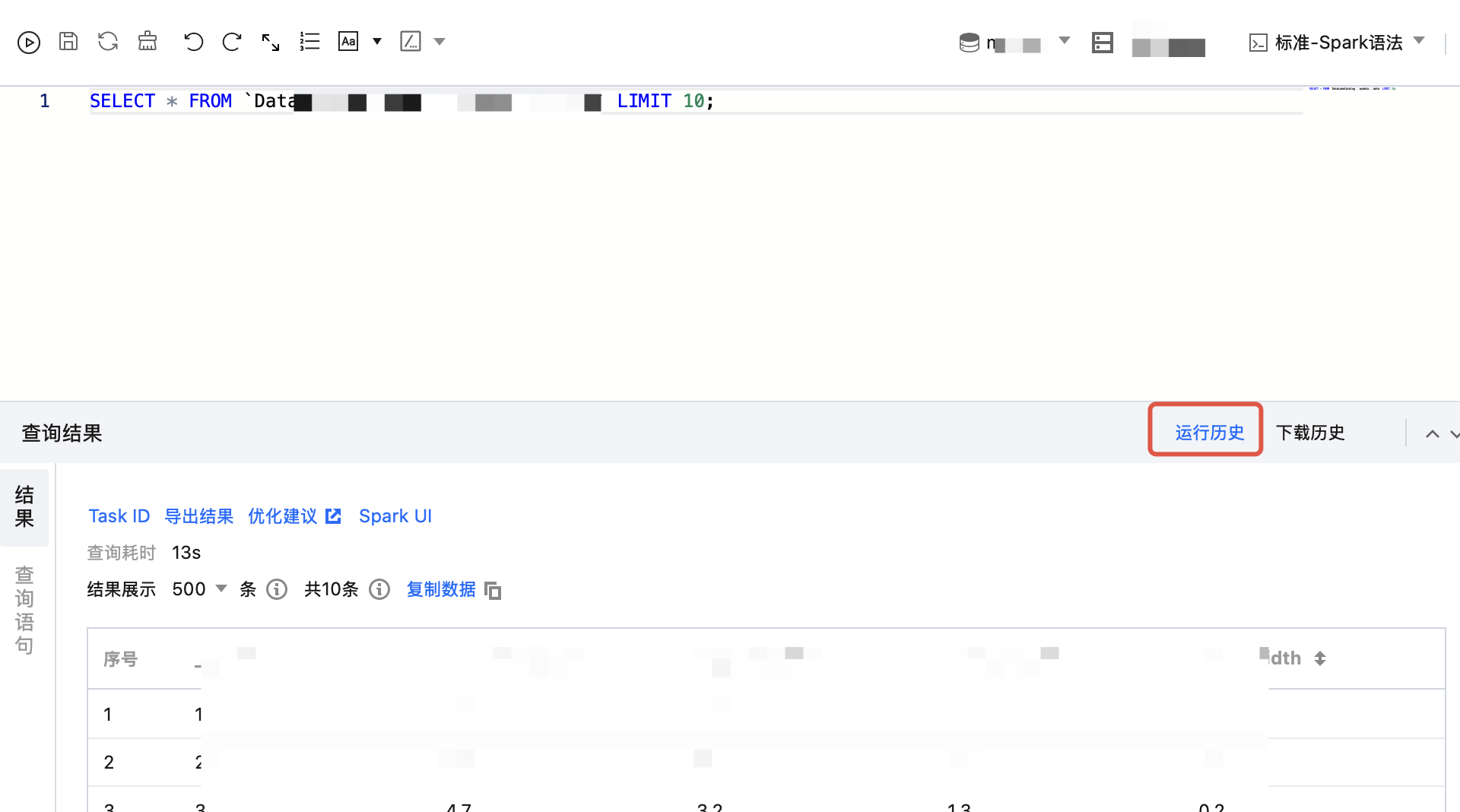 说明:标准引擎 -Presto 暂不支持,全量结果可通过 JDBC 获取全量结果。