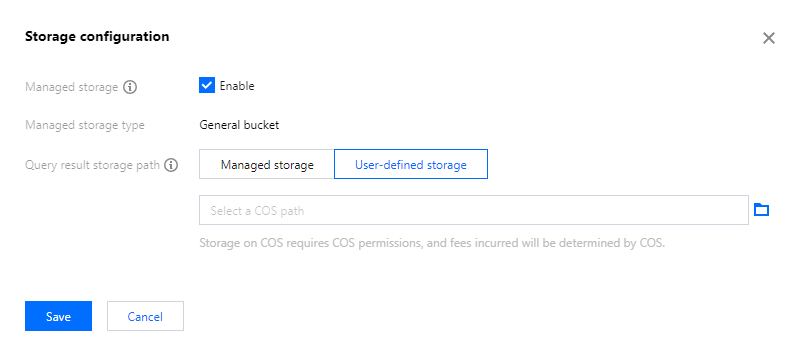Upon initial use of Data Lake Compute, you must first configure the path for query results. Once configured, the query results will be saved to this COS path.