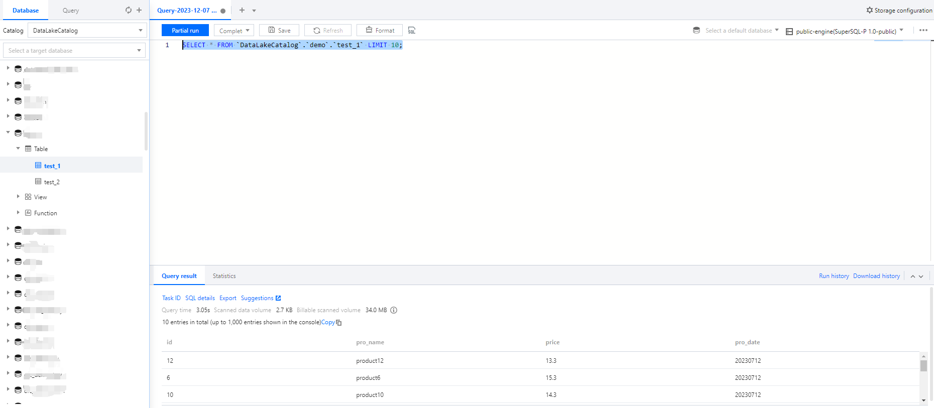 The system will automatically provide each user with a shared public-engine based on the Presto kernel, allowing you to quickly try it out without the need to purchase a private cluster first.