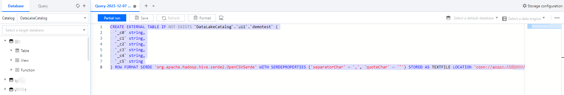 Step 3: If there are no partitions, you can skip this step. Enabling partition use can reasonably enhance analysis performance. For detailed partition information, refer to Query Partition Table.