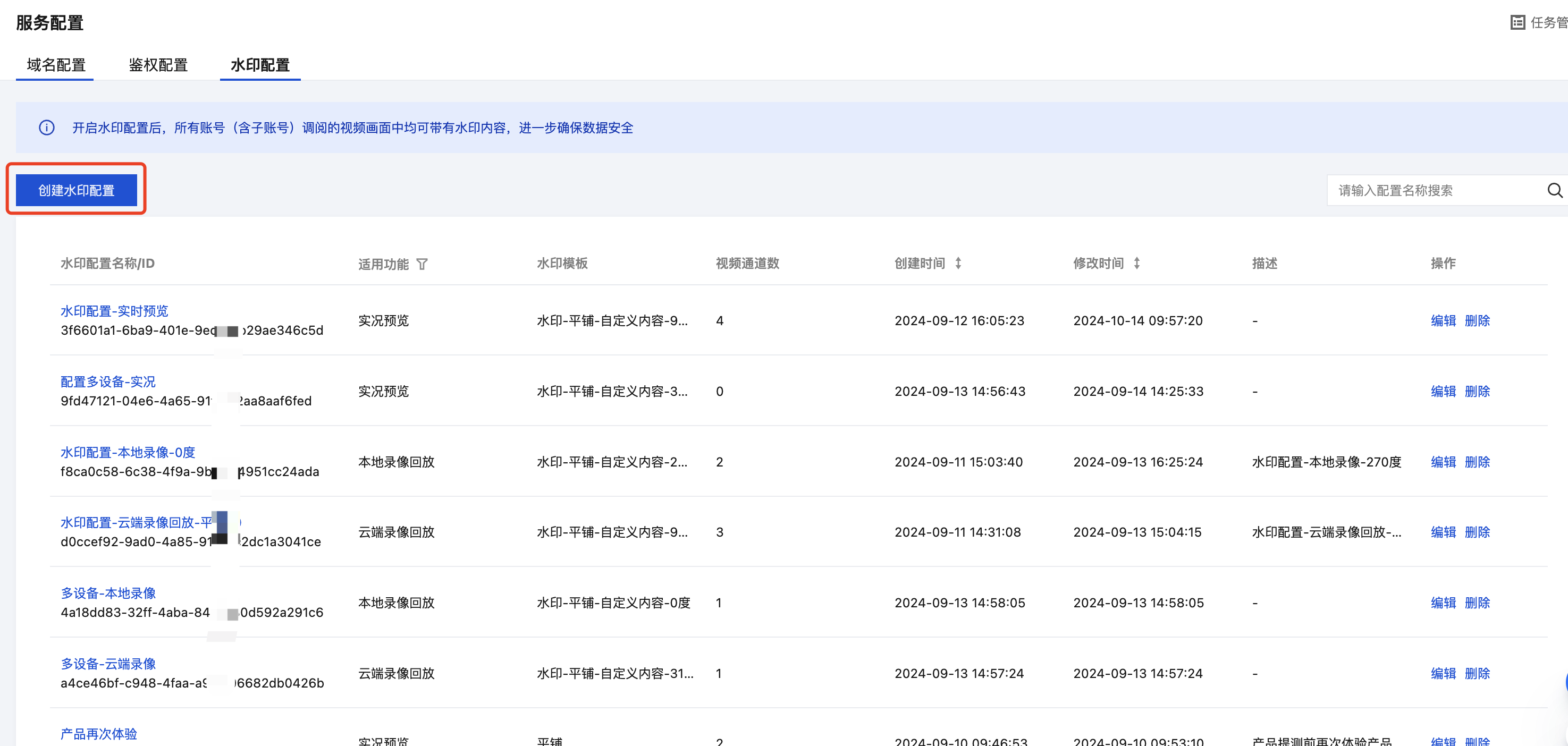 播放器水印适用于实况预览、云端录像回放、本地录像回放3种功能。