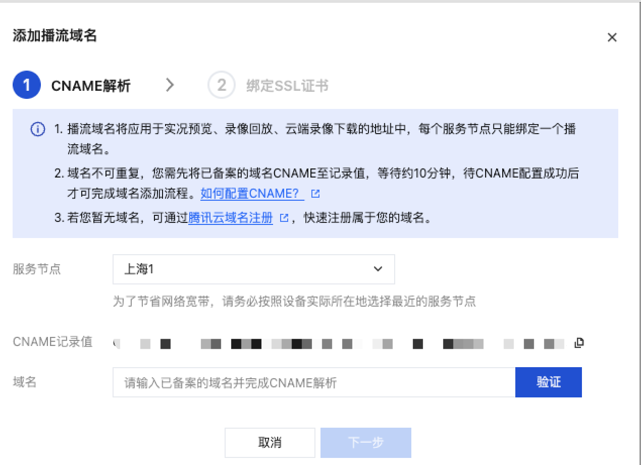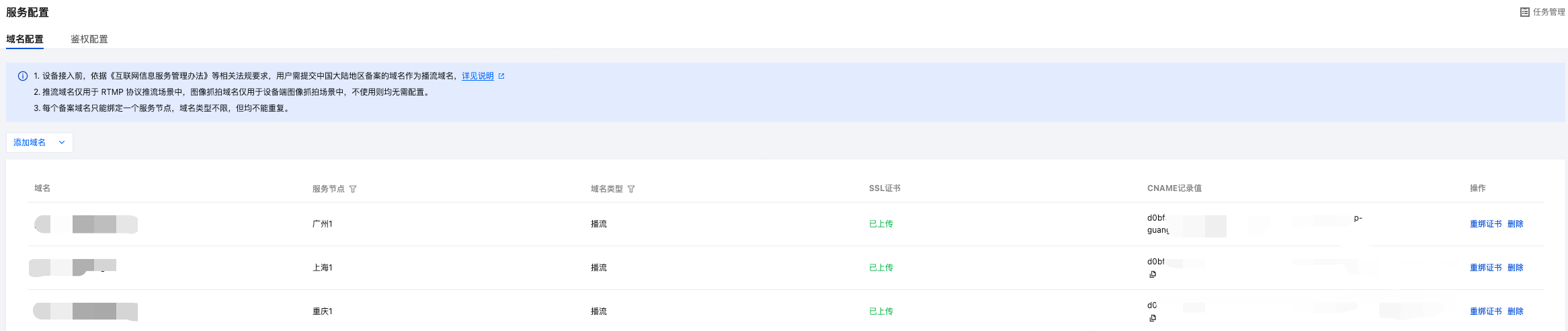 播流域名 | 将应用于实况预览、录像回放、录像下载的 URL 地址中。 | 是 |