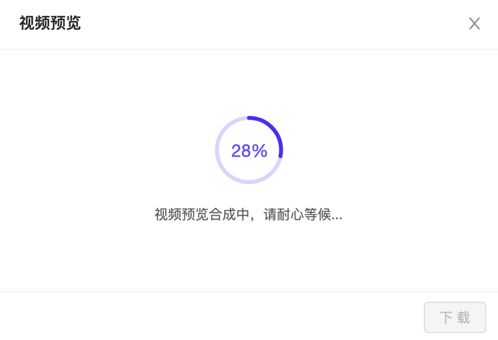 6. 视频编辑完成后,单击右上方的预览视频,视频编辑器会对该视频进行渲染,等待3~5秒即可预览视频。n