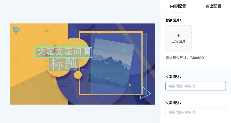 4. 编辑器界面右侧的操作面板提供了视频图像、文字内容的修改替换功能。单击其中一个输入框,画布中将高亮显示该文本框对应的区域,相应输入文字即可;n
